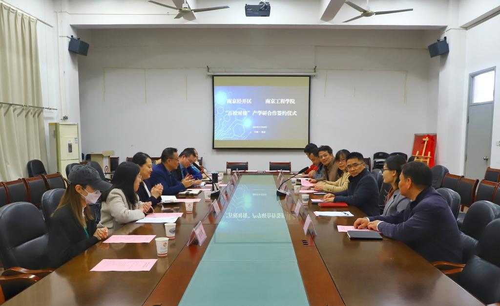 11月25日,自动化学院与南京经开区企业浦和数据有限公司、泰普森自动化设备有限公司在工程中心4号楼302会议室举行了“百校对接”产学研活动。校科技处副处长朱大胜,自动化学院院长陈桂、副院长刘汉忠与南京经开区科技人才局副局长卢文俊、南京浦和数据有限公司COO李越、南京泰普森自动化设备有限公司总经理熊传辉出席产学研项目签约仪式。