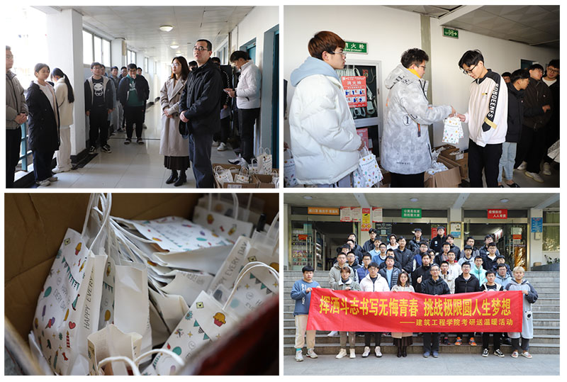 为鼓励考研学子积极迎考,舒缓学生备考压力,12月3日上午,建筑工程学院举办了2022届考研学生慰问活动,该院党委书记陆彤焜、学工办老师走进宿舍为同学们送上温暖和考研暖心礼包,即将参加2021年研究生入学考试的部分毕业生代表参加了此次活动。