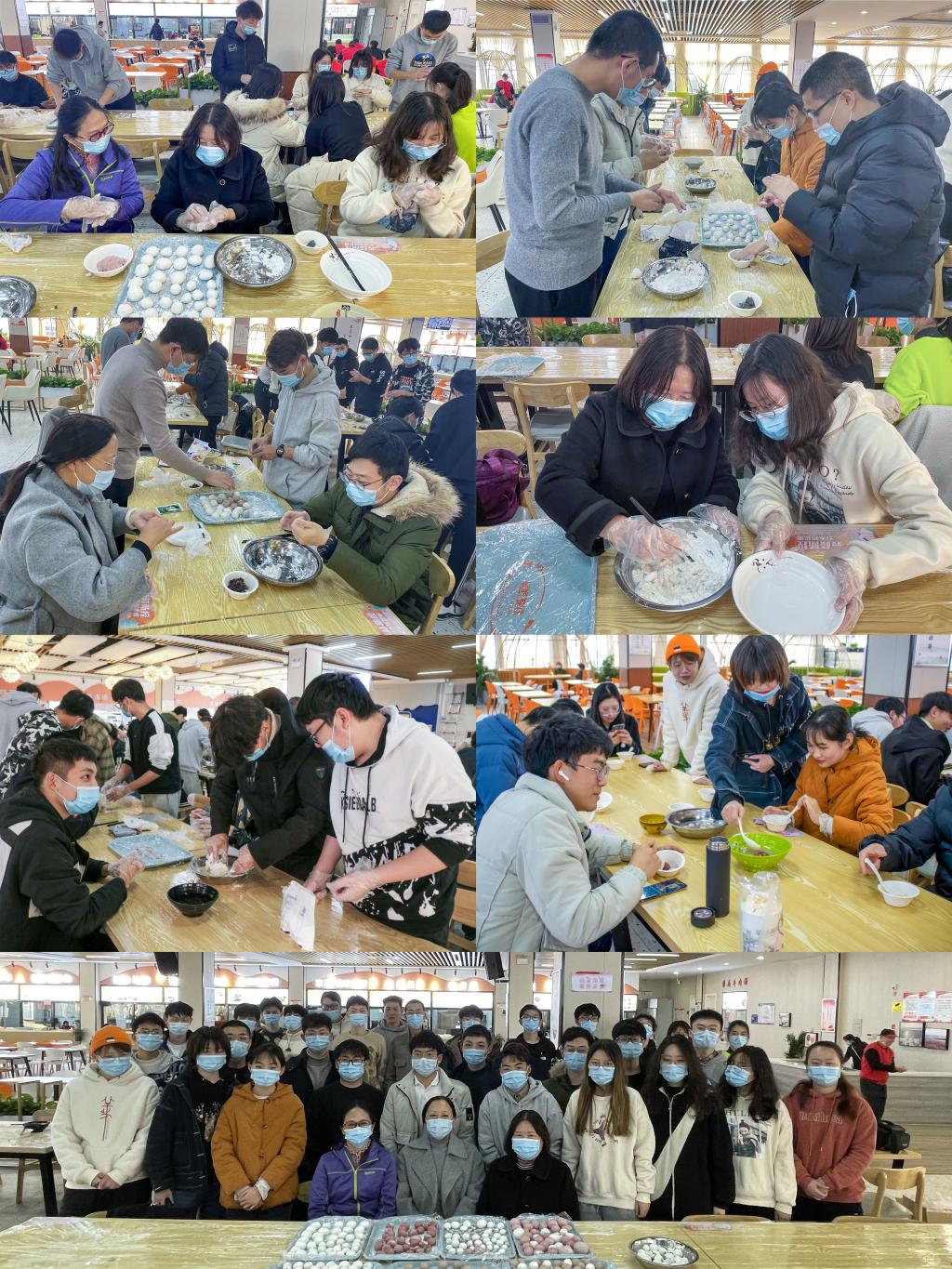 活动现场,老师们与同学们一同包汤圆,共话学习与成长。拼桌子,铺桌布,分发糯米面粉、汤圆馅、锅碗瓢盆等物品,大家已经摩拳擦掌,迫不及待地要各显神通了。同学们尝试着和面团、做汤圆皮、放馅料、捏紧再轻轻揉搓,不一会儿一个个可爱的小汤圆便呈现在眼前。在手把手的教学过程中,老师们亲切询问同学们的近况,了解大家目前的学习状况和存在问题,并提出行之有效的解决办法。“在紧张的复习学习间隙,同学们要注意适当放松,学会理智面对学业压力,调节考试焦虑。”该院党委副书记兼副院长刘艳华老师谈到。当热腾腾的汤圆端上桌后,大家纷纷前来“认领”,品尝着自己的劳动成果。王同学表示,“老师和我们一起动手包汤圆,让我们感受到家的温暖和集体的温馨,也在期末备考的忙碌中放松了心情。”