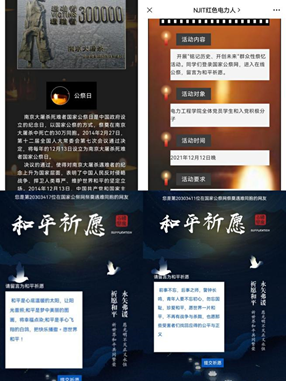 12月13日,第八个南京大屠杀死难者国家公祭日,草木含悲,山河垂泪。为悼念南京大屠杀遇难者同胞,缅怀为中国人民抗日战争献出生命的革命先烈和民族英雄,宣示牢记历史、不忘过去、珍爱和平、开创未来的坚定立场,电力工程学院于12月12日晚20时至12月13日上午10时开展侵华日军南京大屠杀遇难同胞线上祭忆活动。学院500余名学生党员和入党积极分子参加活动,通过留言表达哀思,为和平祈愿。