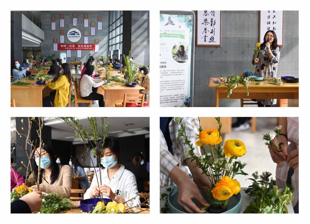 阳春三月,如雪似锦的春花遇上了疫情的反复,虽然人们戴上了口罩、保持着距离,但对美的追求从未打过折扣。3月16日下午,直属单位心灵手巧的女老师们在图书馆用传统插花艺术作品掬起一抔春色,在中华传统艺术的传承中共同表达“抗疫不惧倒春寒”的信心。