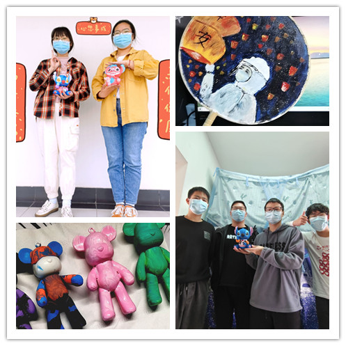 本次“减压大作战”共分为手绘风筝、流体熊制作、解压日历、石膏涂鸦、彩绘团扇五个小活动,活动中,同学们或与室友通力合作彩绘出各种卡通图案的风筝;或积极发挥想象力和动手能力,制作出专属流体熊和石膏涂鸦;或用团扇画出对疫情防控下走在第一线的“白衣”英雄们的崇高敬意和由衷祝福。
