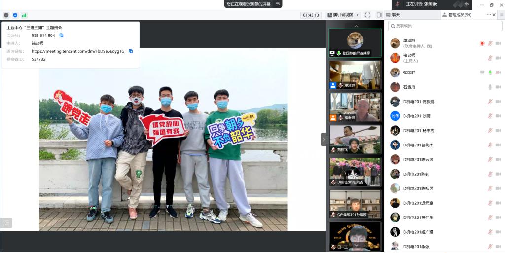 “受疫情影响,线上学习成为我们主要的学习方式之一,听完郑老师的指导,我豁然开朗,会更合理地规划自己的学习生活,发扬青年学生敢于担当的精神,不辜负老师们的殷切希望!”D机电201班周雨轲同学于会后有感而发。