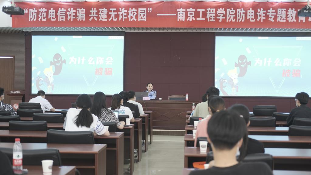 校园防“诈”在行动,民警进校讲反诈。为切实提升beat365师生的防范电信诈骗意识,保护师生财产安全,建设平安校园,5月18日下午,beat365邀请江宁高新区派出所社区中队长李琳警官为在校师生上了一堂“面对面”的反诈专题情景教育课,各学院(中心)师生代表共计3000余人通过线上线下相结合的形式参加了活动。