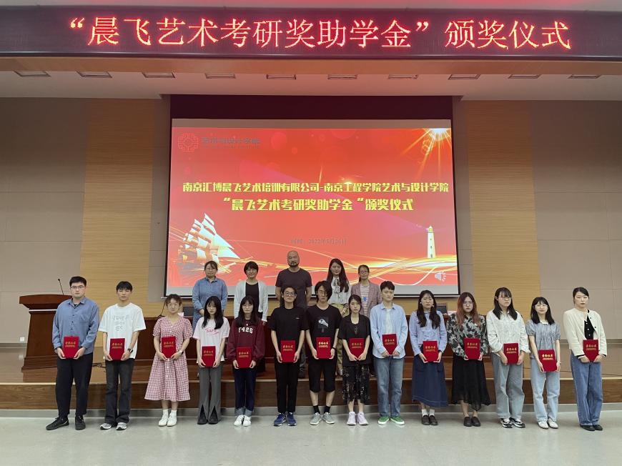 近日,艺术与设计学院“晨飞艺术考研奖助学金”颁奖仪式在动漫影视厅举行,学院党政负责人、南京汇博晨飞艺术培训有限公司负责人、2022届“晨飞艺术考研奖助学金”获奖学生以及部分学生代表共同参加颁奖仪式。