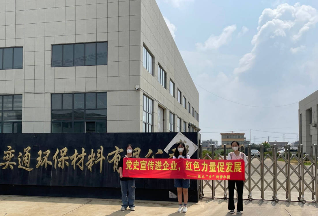 “只有把绿色发展的底色铺好,才会有今后发展的高歌猛进。”为深入了解材料在环保方面的影响与作用,实践团成员前往连云港赣榆区奕通环保材料有限公司参观交流并开展党史学习教育活动。实践队员在工作人员的带领下参观了该公司生产车间,详细了解了环保材料的来源、生产流程、加工包装及工业垃圾处理,掌握了环保材料的基础特性、认真学习机械操作知识,并参与到环保产品的生产过程。