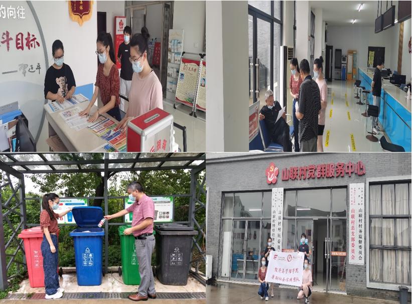 团队成员来到江苏无锡锡山区东港镇山联村,通过制作并发放调查问卷了解村民对于垃圾分类的认识与执行情况,团队成员根据垃圾种类的不同协助布置了科学分类的乡村垃圾桶,悉心指导前来倒垃圾的村民们如何进行垃圾分类,并向村民们科普了垃圾的种类与垃圾回收的利用价值。团队成员在村子垃圾集中回收点了解村民投放垃圾情况,对分类有误的情况及时纠正,助力乡村垃圾分类工作科学有序开展,以实际行动履行保护环境的责任义务。村民们向团队成员们竖起了大拇指:“这么热的天,孩子们依然坚持守候在垃圾分类工作一线,让我们感受到了当代大学生服务社会的才干与信念。”