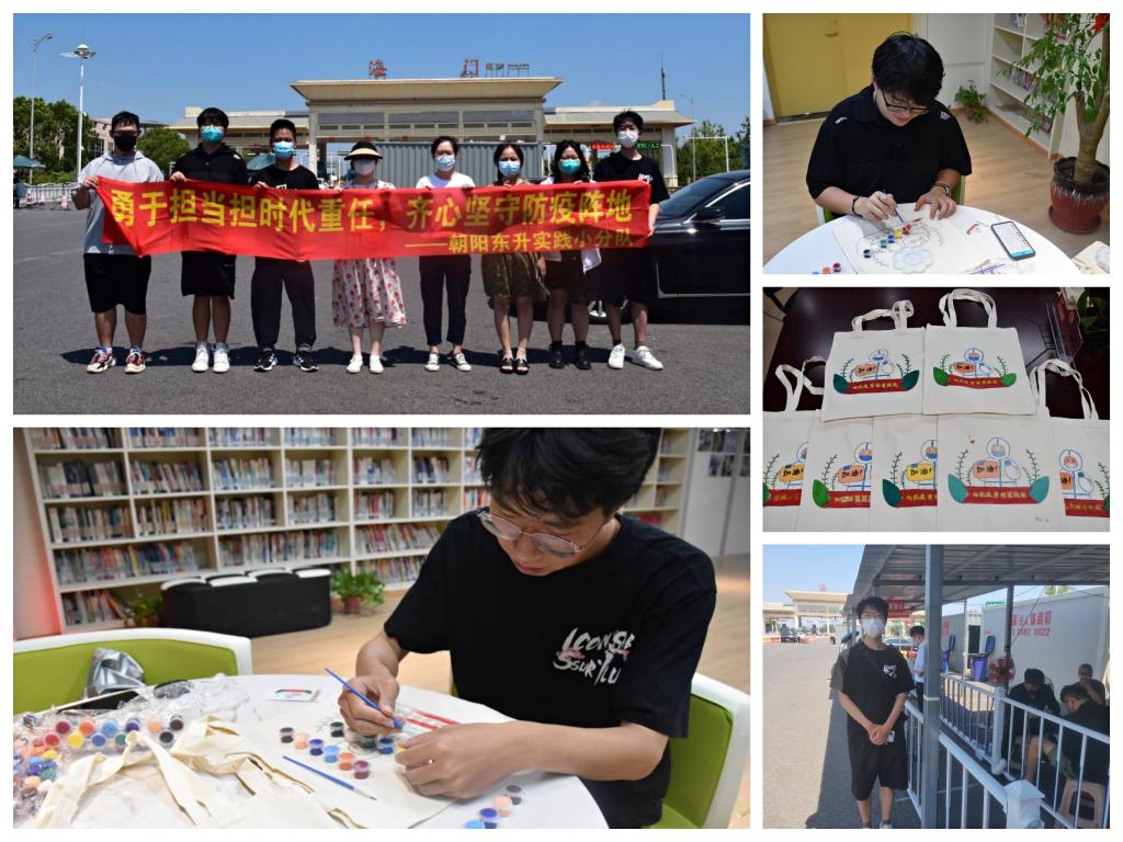 持续不断的高温闷热天气,给坚守一线的医务工作者带来了严峻“烤”验,近日,实践小分队前往南通市海门区G360高速入口给在室外工作的医务工作者送清凉。在秀山村村委会副主任张竣威的带领下,实践小分队成员自行为一线人员配置10个挂脖风扇、10个冰椰子,10桶八喜冰激淋,50瓶脉动以及三箱矿泉水等物品,感谢工作人员舍小家顾大家,为守护居民健康做出的卓越贡献,高温期间注意劳逸结合、保重身体。团队成员还将亲自手绘的帆布包作为礼物送给工作人员,“一笔一笔颜料的绘染涂抹,彷佛看见了他们在烈日下汗流浃背仍然坚守一线排查每一辆过往车辆。”