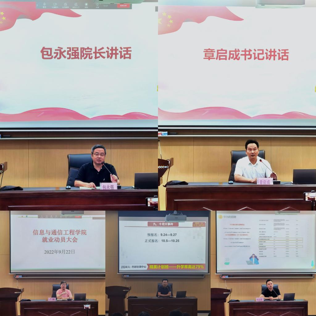 为扎实推进2023届毕业生就业指导工作,帮助毕业生明晰当前就业形势,树立正确的就业观、择业观。9月22日,信息与通信工程学院在信息楼举行2023届毕业生就业动员大会。学院院长包永强,党委书记章启成,副书记、副院长卢娜,优秀校友代表,学工办老师与2023届全体毕业生参加大会。