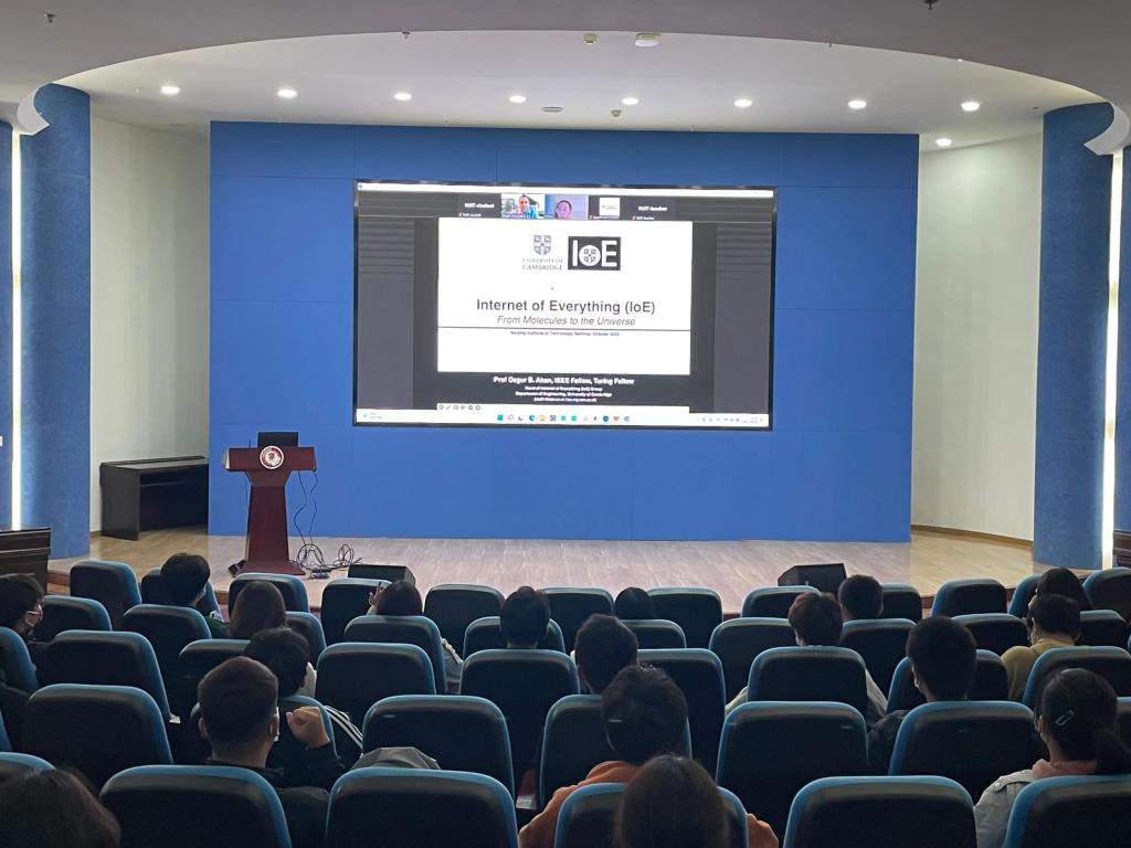 10日26日,由国际合作与交流处、人事处、教务处、科技与产业处共同组织的“名校学术系列讲座”迎来了第三场学术报告,来自英国剑桥大学工程系物联网小组的Ozgur B. Akan教授为beat365师生做了题为“Internet of Everything (IoE)–From Molecules to the Universe”(译名:万物互联-从分子到宇宙)的讲座。信息与通信工程学院、电力工程学院等学院教师代表和学生代表聆听学习。
