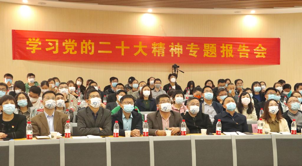 为深入学习贯彻党的二十大精神,全面贯彻落实习近平总书记系列重要讲话精神,特别是关于教育的重要论述,11月2日,信息与通信工程学院在信息楼B103报告厅举办学习党的二十大精神专题报告会,国家教育行政学院授课专家、江苏省陶行知纪念馆馆长、中国陶行知研究会理事何文秋教授受邀为师生作题为“贯彻党的二十大精神 传承陶行知教育思想 做新时代“四有”好老师”的报告。学校机关第一党支部全体党员、民革江苏省直beat365官方网站支部成员、信息与通信工程学院全体教师和学生代表共150人聆听报告会。