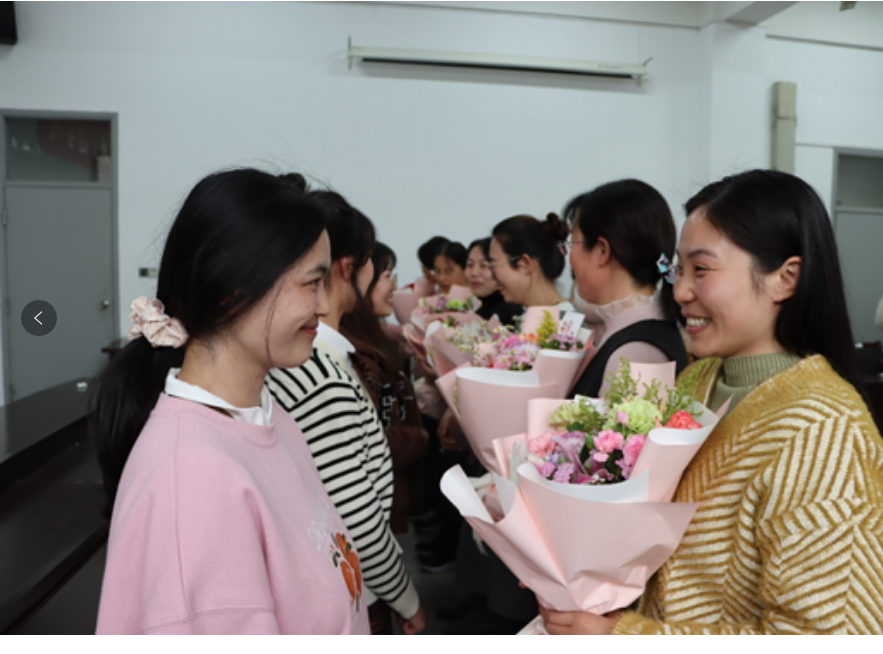 会后,同学们纷纷向老师献上鲜花,以表达节日祝福。