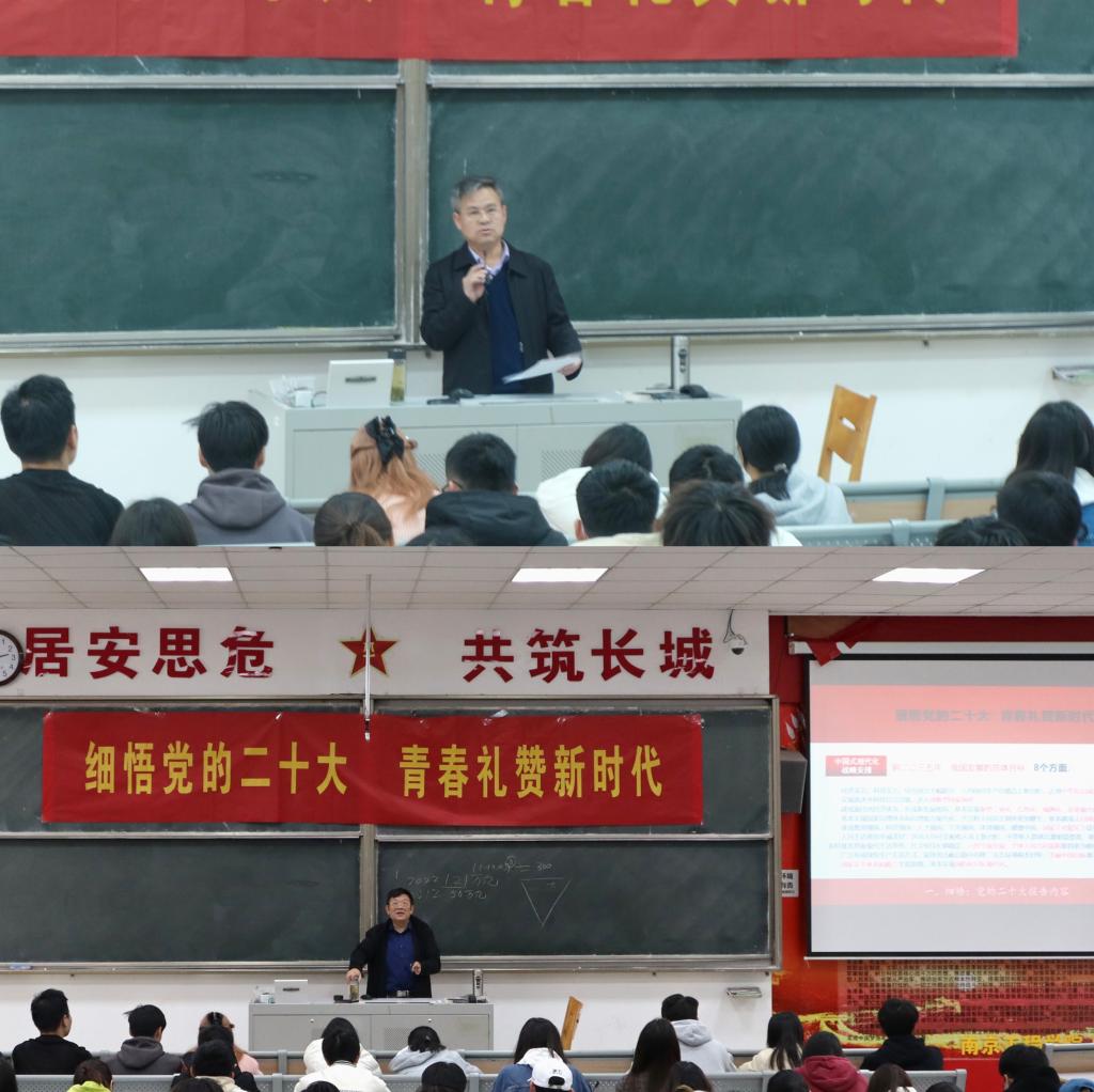 讲座中,李明国教授以深入浅出、通俗易懂的语言为同学们详细解读了党的二十大报告的具体内容。他以党的二十大报告中关于做好青年工作的论述为切入,用详实的数据、生动的案例重点阐述了中国式现代化的新征程上当代青年的使命与担当。“在这个崭新的时代,充满了无限的机遇和未知的挑战,要做有理想、敢担当、能吃苦、肯奋斗的青年,在学好专业知识的基础上,更要拓展自己的知识面,更好地担负历史赋予的重任。”李教授勉励在场的同学。