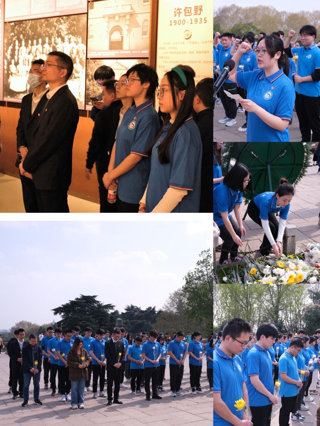 企业参观交流结束后,师生校友共同前往南京雨花台烈士陵园开展“清明祭英烈”活动。“缅怀先烈,不忘初心,才能走好新的长征路。”在雨花台烈士纪念碑前,大家伫立凝望,向革命先烈敬献花篮;缓步绕行,献上一朵朵寄托哀思的菊花。“我志愿加入中国共产主义青年团,坚决拥护中国共产党的领导……”一批新团员面对鲜红的团旗庄严宣誓,青春誓言、高昂雄浑,表达了作为一名共青团员的责任与担当。在雨花台烈士纪念馆,同学们认真聆听现场讲解,时不时驻足细看,一幅幅历史图片、一件件革命遗物、一个个逝去的年轻生命……大家沉浸式感悟雨花英烈用生命诠释的信仰力量。“此次团日活动让我收获颇多,是一次思政教育活动,更是一次思想洗礼。我会带着这份热血与信念,以更加昂扬的斗志勇毅前行。”继保201班黄佳瑶同学激动地说道。