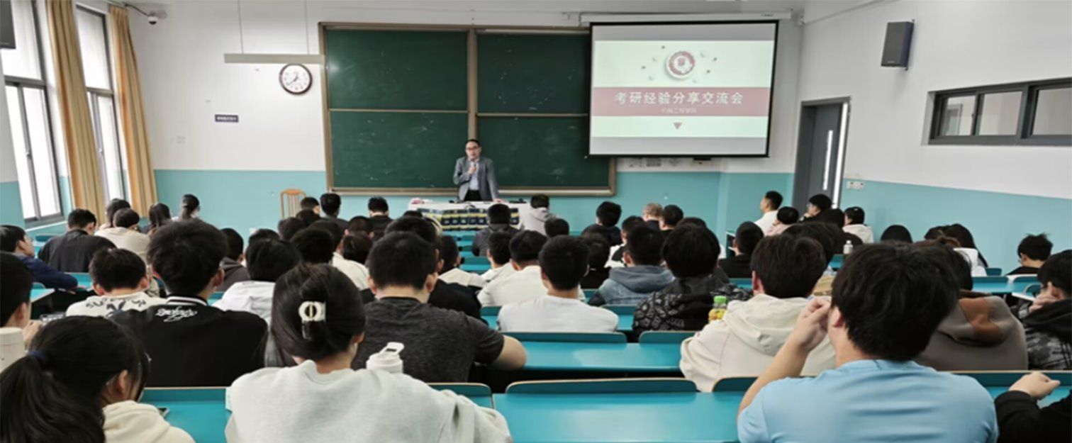 为培育优良学风,引导学生更好地制定学涯规划。5月10日,机械工程学院在经管楼C309组织开展了2024届考研动员暨经验分享会。分享会邀请2023届考研、考公上岸的优秀学生党员代表分享学习经验,该院院长黄家才、党委副书记印书范以及师生代表百余人参会。