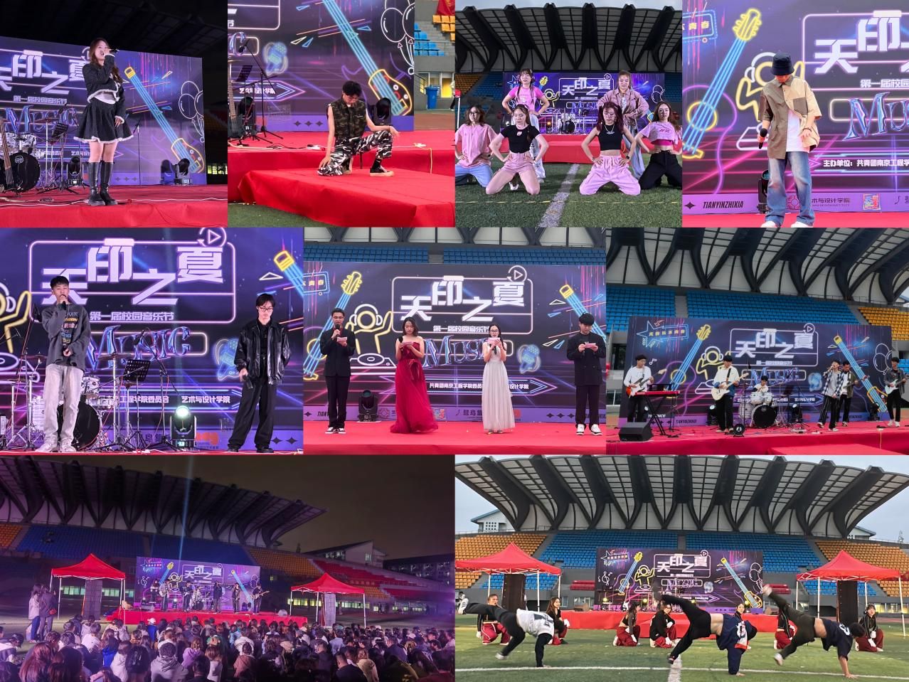 本次音乐节共设置3个主题活动,包括“绽放青春风采,礼赞伟大征程”主题摄影大赛、“鹭鸟集市”校园文化集市活动、“天印之夏”音乐嘉年华。“绽放青春风采,礼赞伟大征程”主题摄影大赛于3月26日开赛,历时一个月共收到来自艺术与设计学院、电力工程学院、材料科学与工程学院、建筑工程学院、经济与管理学院等学院共计数百余件作品,线上收集了40734网络票,浏览高达19064次。通过对参赛作品进行初选、入围作品网络投票、专业评审团评选等环节,最终评出一等奖4个、二等奖8个、三等奖10个、优秀奖13个;“鹭鸟集市”校园文化活动则面向校内外共征集20余个摊位,包含文创手作、创意手工、潮玩、非遗文化、饮食、创作体验等各具特色的摊位,吸引了不少同学前来参与观赏。鹭鸟集市的创办为同学们提供了文化项目实践平台,同时也展现南工程学子的创新能力和优秀素质;在天印之夏”音乐嘉年华的舞台上,潮流舞蹈、流行音乐、摇滚乐队等节目将此次音乐节的气氛引入到高潮。炫酷的舞台、闪烁的灯光、精彩的节目,集中展现了beat365学子多才多艺、自信昂扬、蓬勃向上的风采。