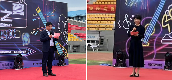 为丰富校园文化生活,营造活跃、浓郁的艺术和人文精神氛围,5月24日,校团委、艺术与设计学院联合举办的第一届“天印之夏”校园音乐节在体育公园火热上演。校团委副书记臧利国(主持工作),艺术与设计学院党委书记周玉霞、党委副书记胡晓清出席音乐会开幕式。