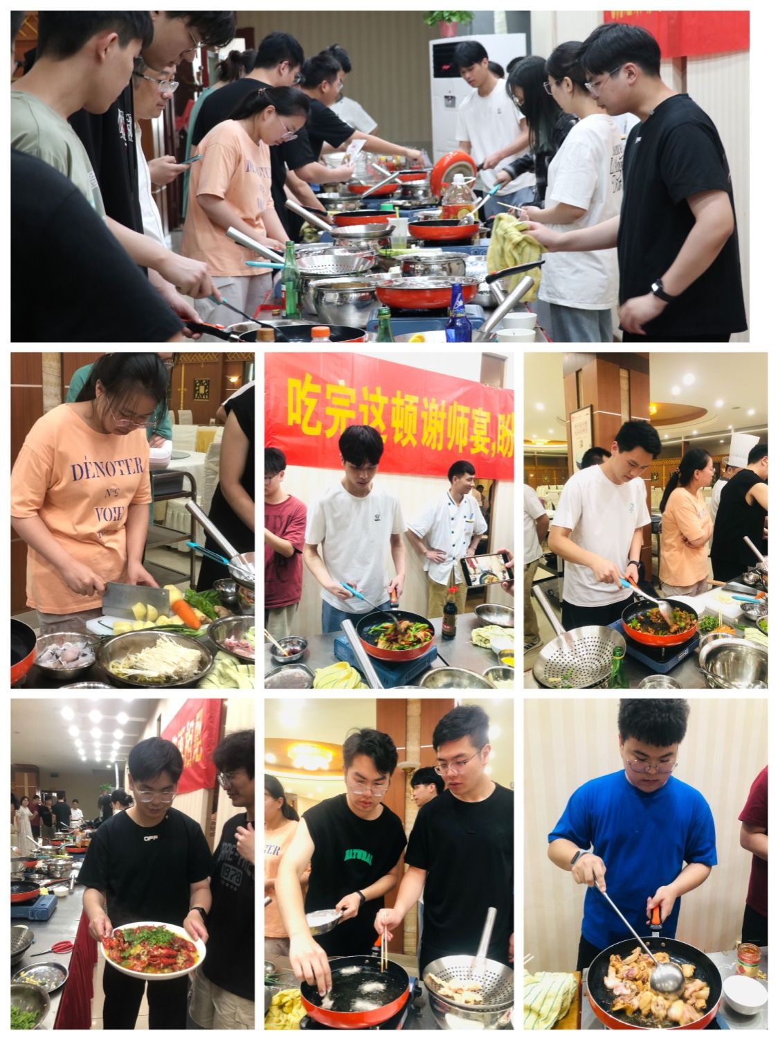 “‘锅包肉’是我老家的特色菜,我们想把家乡美食亲手烧给各位老师吃,感谢老师们大学四年对我们的栽培。”来自集控191班的王泰淇这样说道。6月13日下午,能源与动力工程学院在亿恒酒店举办了一场特殊的“谢师宴”,2023届毕业生代表亲自下厨,为老师做上一桌家乡特色美食,既有创意,又有心意。学院党政负责人、毕业班第二班主任、班主任、辅导员们与2023届毕业生代表参与了此次活动。