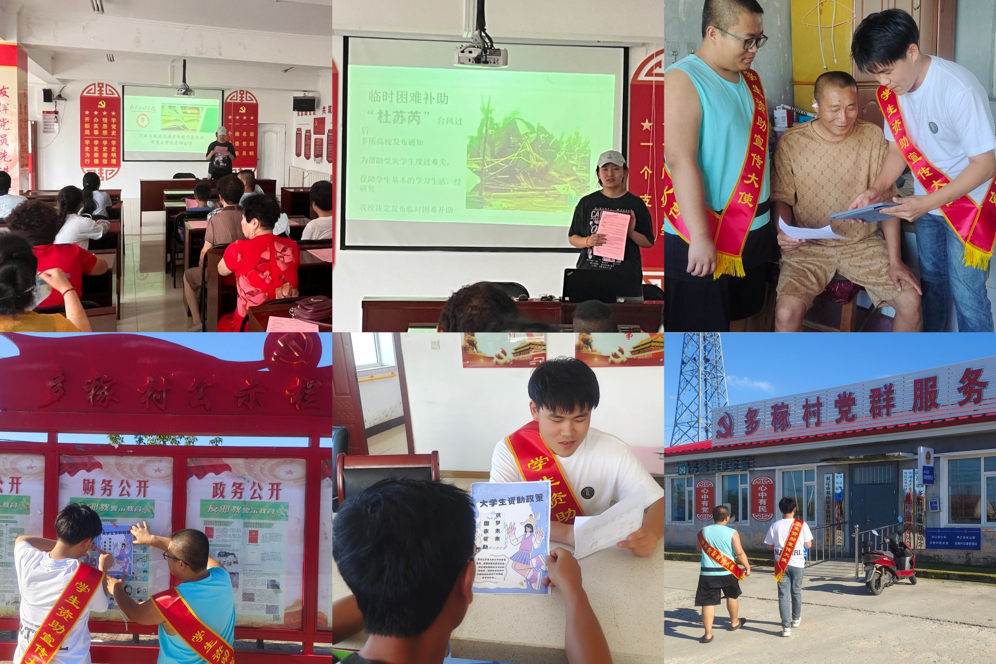团队成员有的走家入户,有的走进社区服务中心和乡村党群服务中心,为当地青年学子普及国家资助政策。志愿者们详细介绍了学校勤奖、助、勤、贷、免、补和绿色通道的助学政策,真正地将资助政策送到乡村田野,送到老百姓家里,将党和政府的关爱送到青年学子心上。实践活动开展期间,台风“杜苏芮”给吉林省部分地区带来暴雨天气,导致严重的洪涝灾害,实践团成员及时向当地村民介绍了学校的“临时困难补助”政策和相关申请办法。“资助政策遍及乡里,普惠大众,我真切感受到国家对学生学业的支持和帮助。生活在美好时代,我们更好加倍努力,以实际行动去为社会做贡献。”该校准大一新生周同学如是说道。