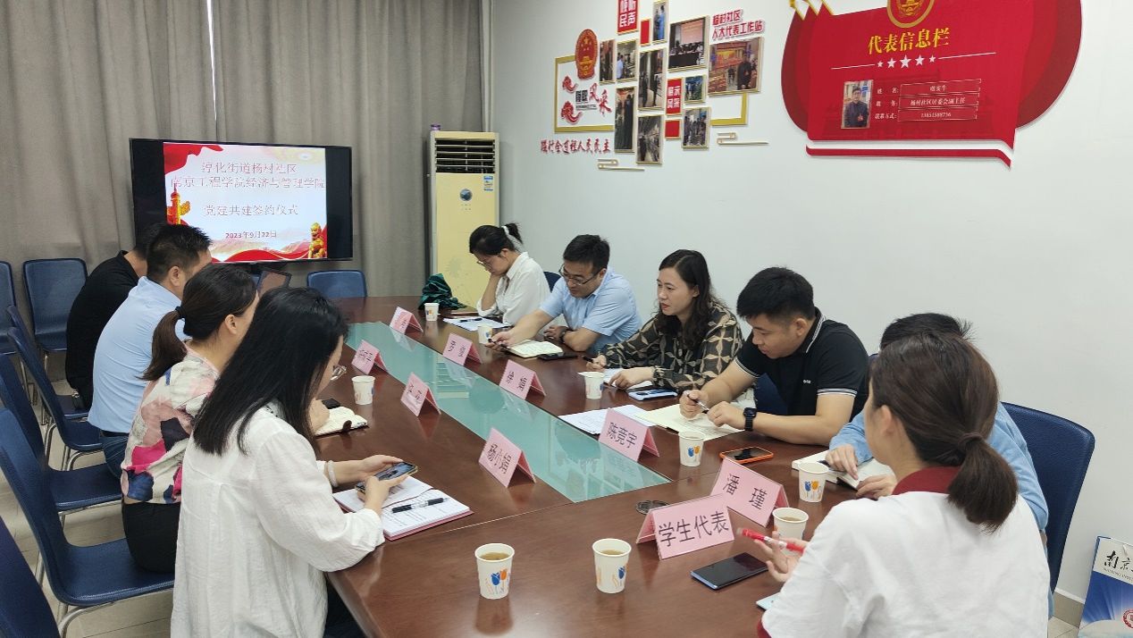 为深入学习党的二十大精神,全面贯彻习近平新时代中国特色社会主义思想,充分发挥党建引领作用,进一步加强院地合作共同发展,9月22日,经济与管理学院党委书记罗俊、党委副书记兼副院长徐娟带队到江宁区淳化街道杨村社区走访调研,开展党建共建合作活动。淳化街道杨村社区党委书记许花等人参加本次活动。