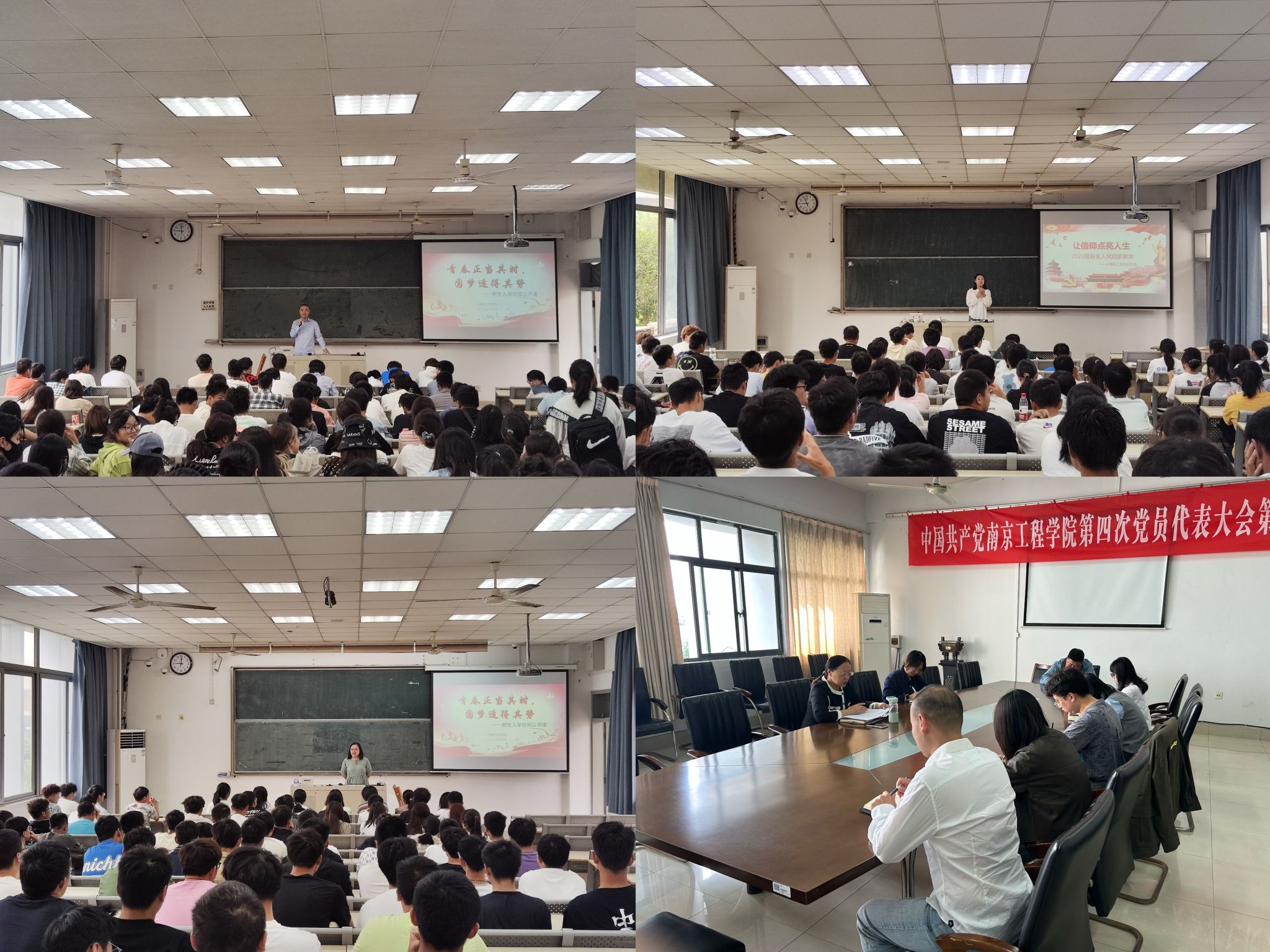 引航新生第一课,激发青春正能量。入学教育是大学生思想政治教育的重要组成部分,是同学们步入大学生活的“第一课”,计算机工程学院提前谋划、细致安排,通过青年讲师团、信仰公开课、主题团日活动等方式,引导同学们坚定理想信念,养成良好学风,勇于拼搏奋斗,走好成长成才的第一步。为帮助广大新生更深入领会学校第四次党代会精神,该院开展“师生同上一堂思政课”活动,积极组织辅导员、班主任、学生党员以及主要学生干部代表走进新生班级,分享第四次党代会学习心得,以特殊形式引航新生第一课。“学校第四次党代会的胜利召开,鼓舞激励全校师生为学校事业高质量发展接续奋斗,希望广大新生在新的起点上跑出青春速度、实现青春价值、贡献青春力量。”新生辅导员徐娜老师在主题班会上如是说道。