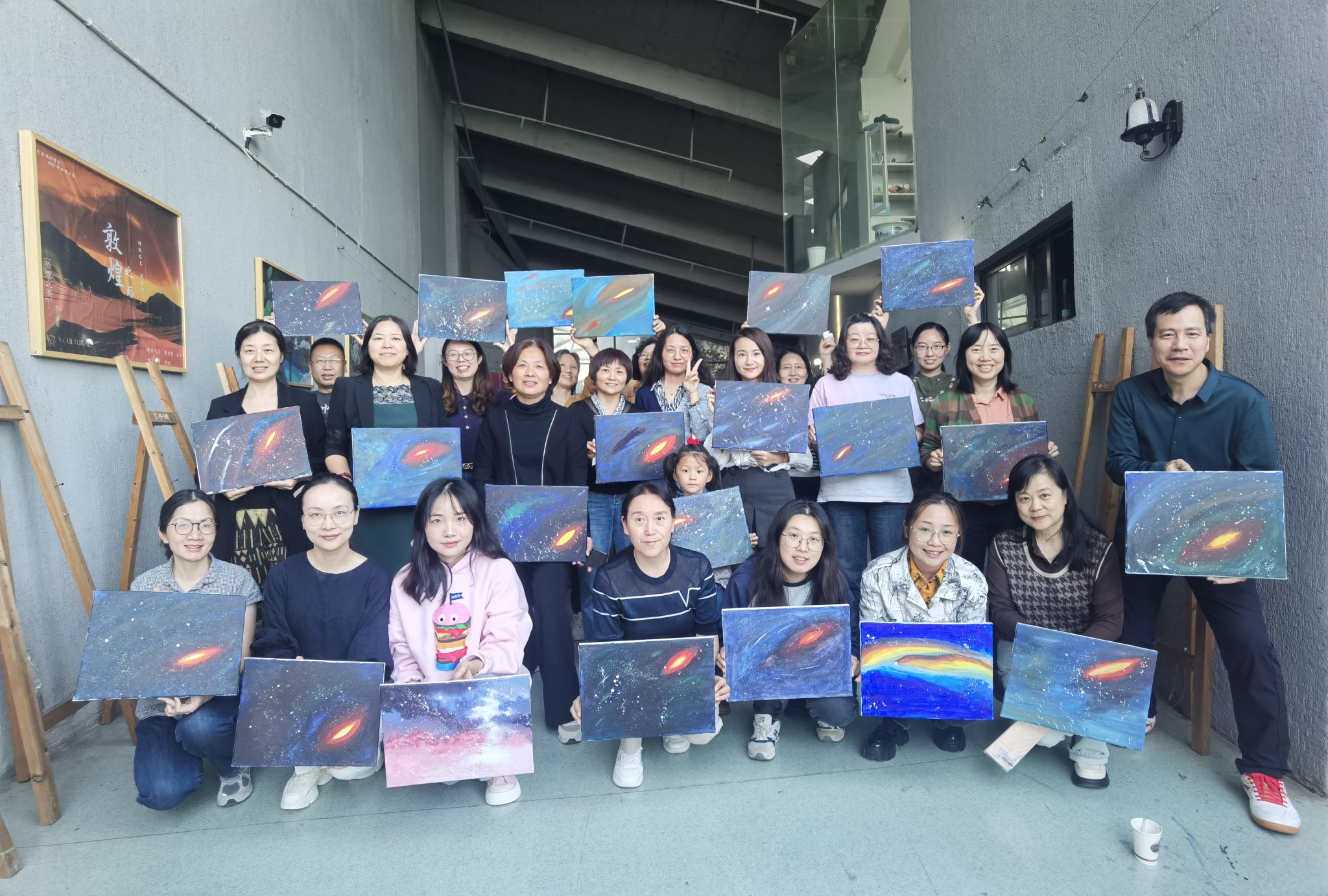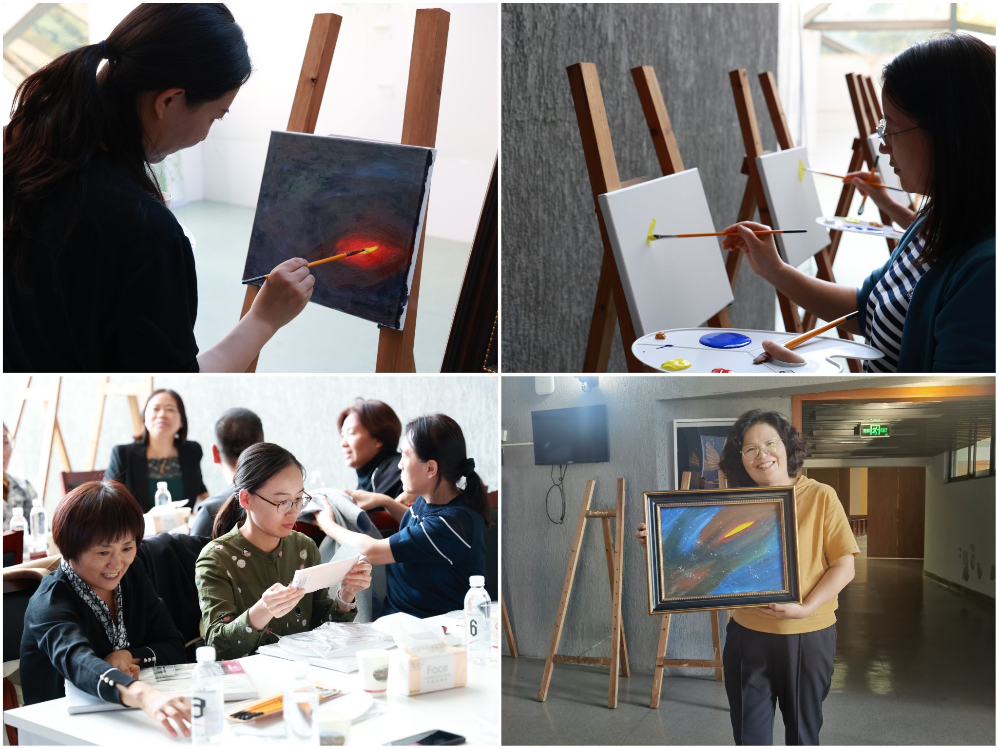 绘画环节,在指导老师的示范下,老师们挥动画笔,将自己内心的星空想象投射到画布上。一笔一划都流露不同的情感,有的选择蓝色,象征着宁静和祥和;有的钟情于紫色,展现神秘与浪漫。在创作的过程中,大家深刻体验着色彩带来的治愈效果。