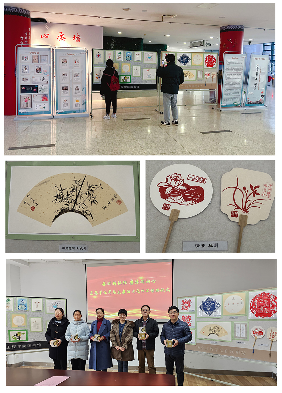 为加强新时代廉洁文化建设,营造风清气正的廉洁工作氛围,推动廉政教育走深走实,11月29日上午,直属单位党总支在图书馆二楼举办“奋进新征程 廉洁润初心”党风廉政主题文化作品展,主题突出、内容丰富的作品一经展出,引得师生纷纷驻足欣赏。