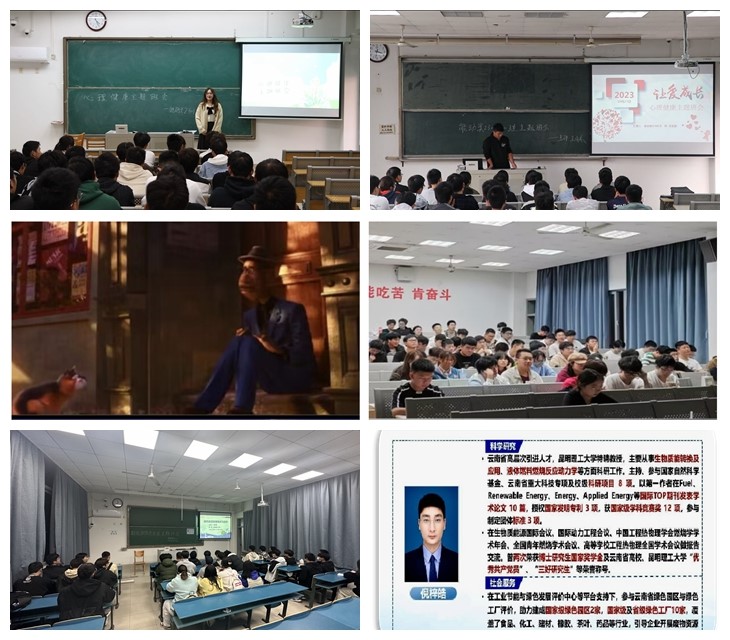 朋辈互助,给精神“心”能量。“忘记创伤,是宇宙赠与你最好的礼物之一。”在“为心灵减负,为成长赋能”心理健康主题班会上,同学们正聚精会神地观看着电影《心灵奇旅》。能动类2301班通过心理类电影,以可视化的方式普及心理健康知识,引导同学们探讨缓解心理压力的方法,学会应对挫折,培养积极乐观的学习与生活态度。能动类2308班借助趣味心理测验进行交流和互动,培养互助意识,建立积极向上的班级氛围。此外,为了更好帮助同学们适应大学生活,能动类2306班邀请昆明理工大学特聘教授倪梓皓开展“新生第一课”,指导各位同学做好学涯规划。