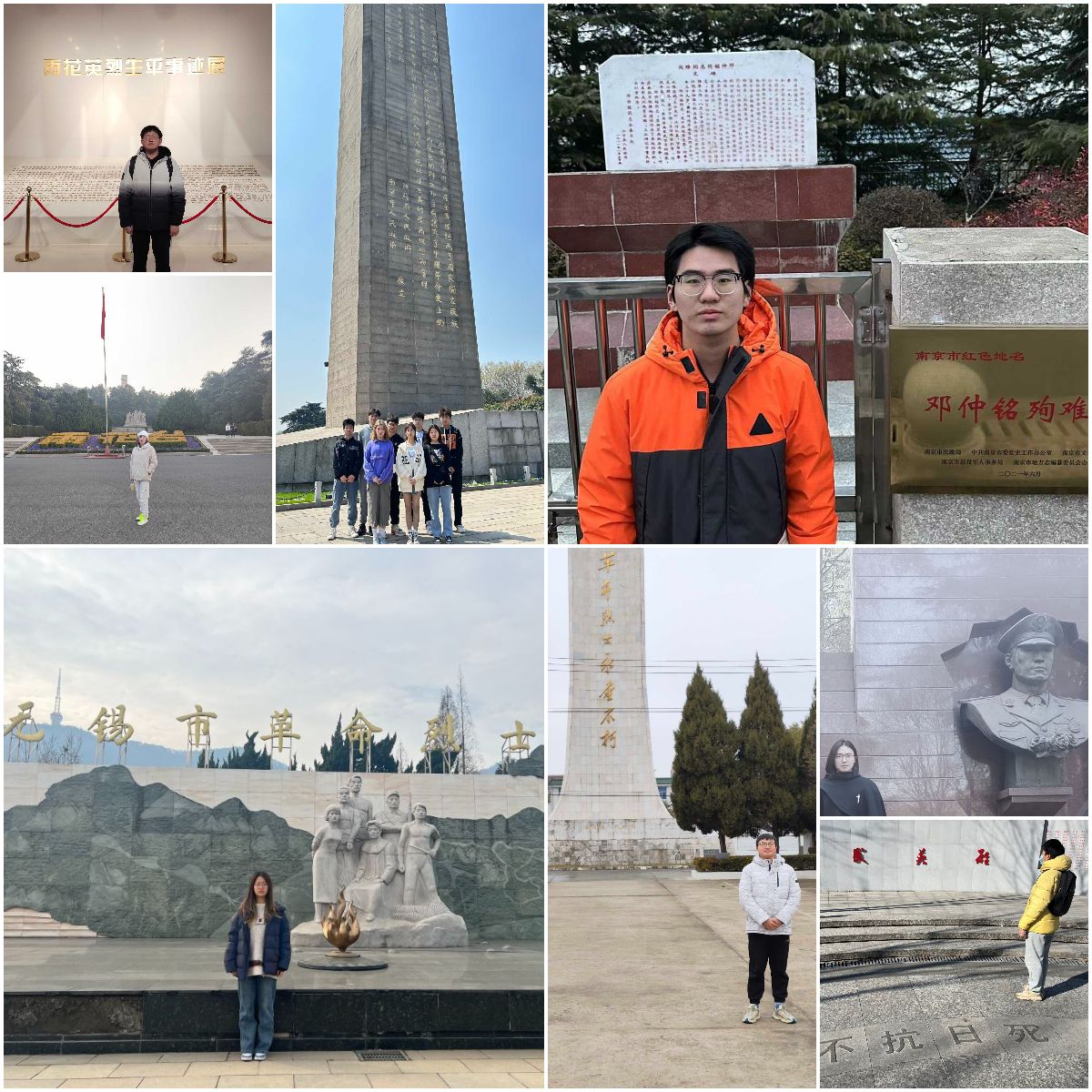 缅怀革命烈士,传承红色基因。戴锦恒、高豪杰、李阳、倪俊宝四位同学走进雨花台烈士陵园,聆听革命烈士的伟大事迹,追寻最绚丽的“红”。同学们纷纷表示,学习并传承“信仰至上、慨然担当、舍身为民、矢志兴邦”的雨花台英烈精神,继承先烈遗志,树立远大理想,做新时代青年环保人。葛亮同学参观了位于盐城盐都区的潘黄烈士陵园:“从小听着潘克、黄炜两位英雄烈士的故事长大,他们的精神时刻伴随着自己。”顾宏洋同学走进无锡市革命烈士陵园,在“为国牺牲人民英雄纪念塔”低头默哀,表达对革命先烈的敬仰和缅怀。“既被邓仲铭烈士的事迹感动,也被纪念碑看护人徐九根的坚持打动,正是千千万万平凡人的奋斗,造就了伟大的中国。”陆曦同学走进位于南京江宁禄口的邓仲铭殉难处,见到了为烈士守碑15年的七旬老人徐九根。王裕清同学参观了泗阳县爱园烈士陵园,表示“革命先烈的事迹让我感到特别震撼,深受教育,我一定好好提升自己,发扬他们勇于奉献的革命精神。”