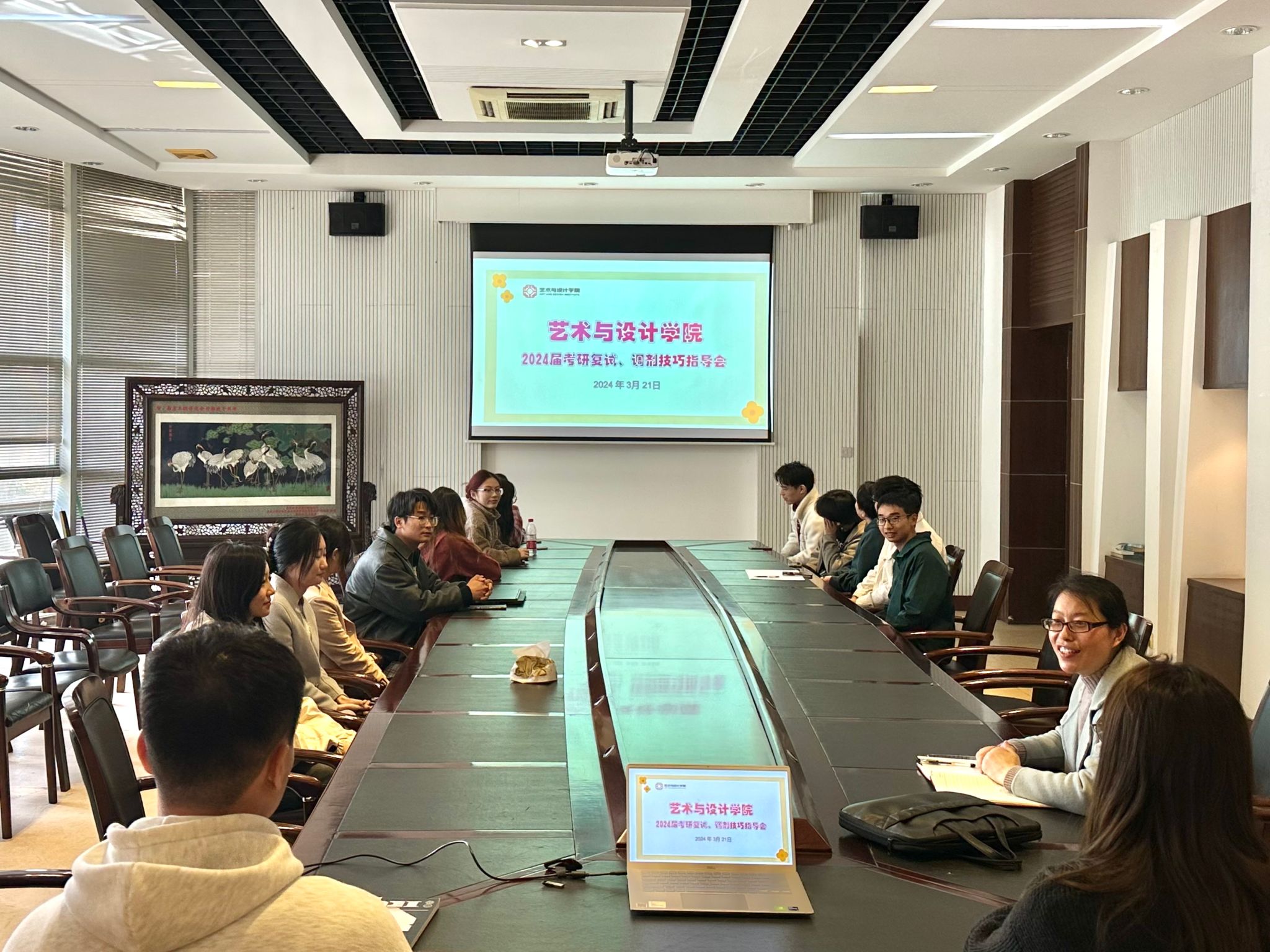 为帮助考研学子充分准备复试,答疑解惑,助力考研上岸,3月21日,艺术与设计学院于设计北楼104举办考研复试、调剂技巧指导会,本次指导会邀请2023届毕业生、就读南京林业大学研究生的付文洁,学院产品与交互设计研究生唐雨进行经验分享。