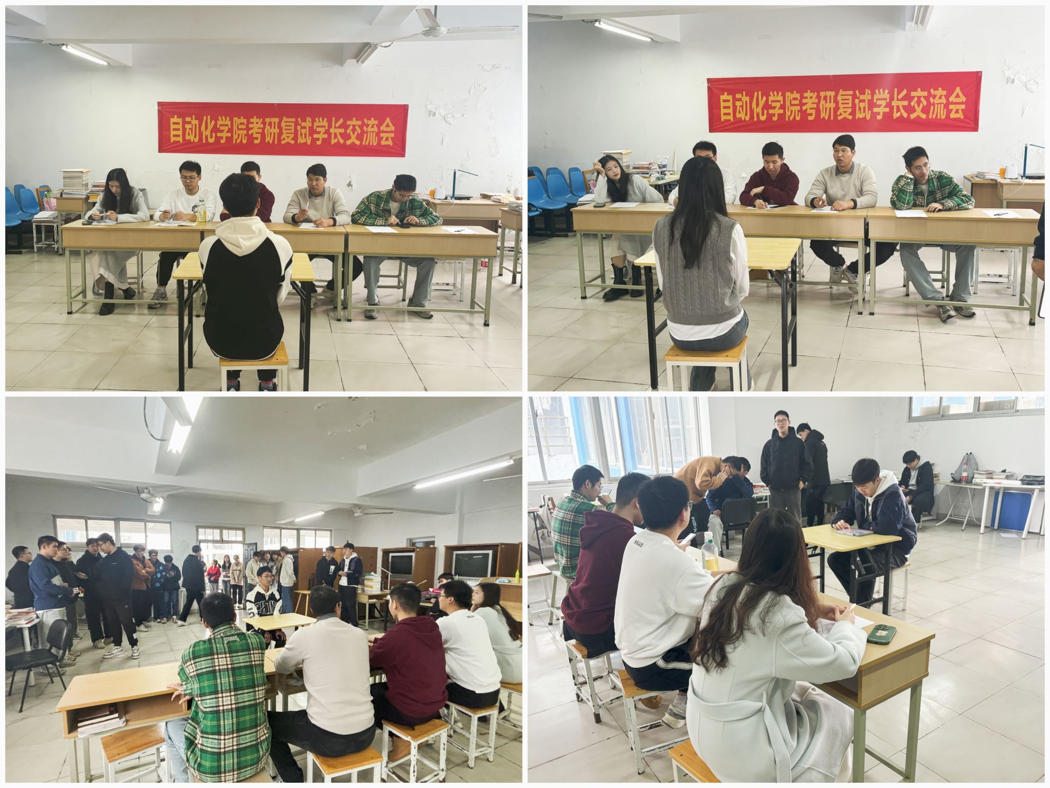 校友们结合自己面试的实际场景和研究生阶段的学习心得,结合学院专业特点,从自动化专业的控制理论、测控技术与仪器、机器人技术等核心课程出发,结合考生研究方向设置相关问题,要求考生现场分析并提出解决方案,检验其理论与实践相结合的水平。通过模拟复试,告诉同学们要做好全方位准备,不仅熟练掌握外语表达技巧,还要了解常见面试问题的思路,理清专业知识框架,同时注意仪表举止等细节。只有合理分配复习时间,有针对性地准备,才能在复试中游刃有余。