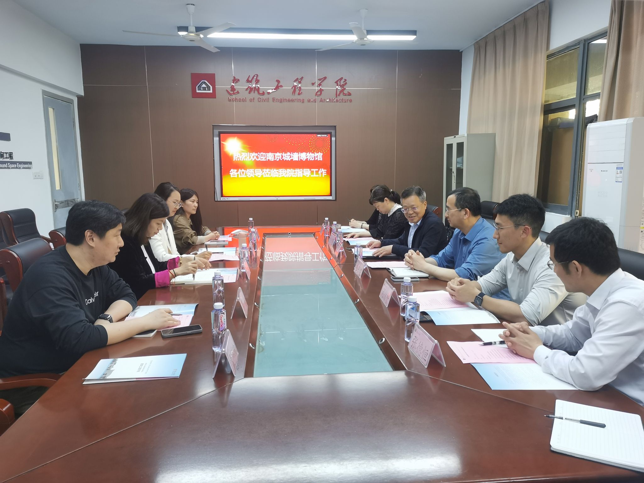 4月15日,南京城墙博物馆任卓、金连玉副馆长一行4人来建筑工程学院走访调研,该院院长张文福,党委书记陆彤焜,相关系主任、研究所负责人与来访人员进行了座谈交流。