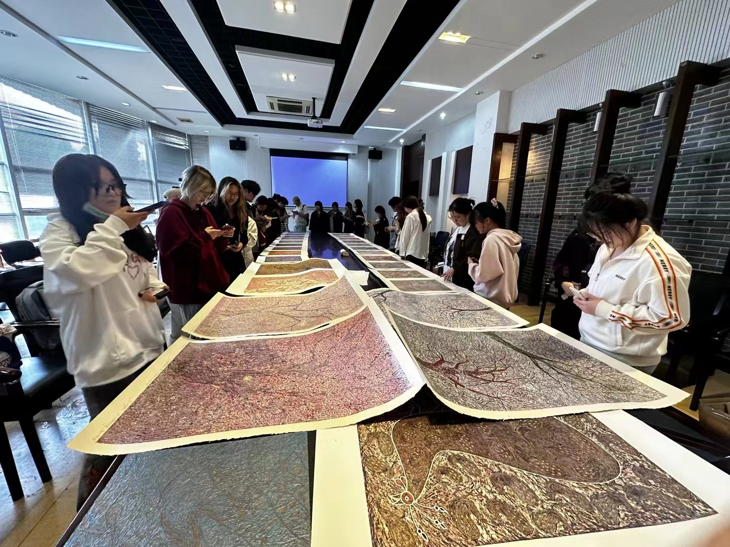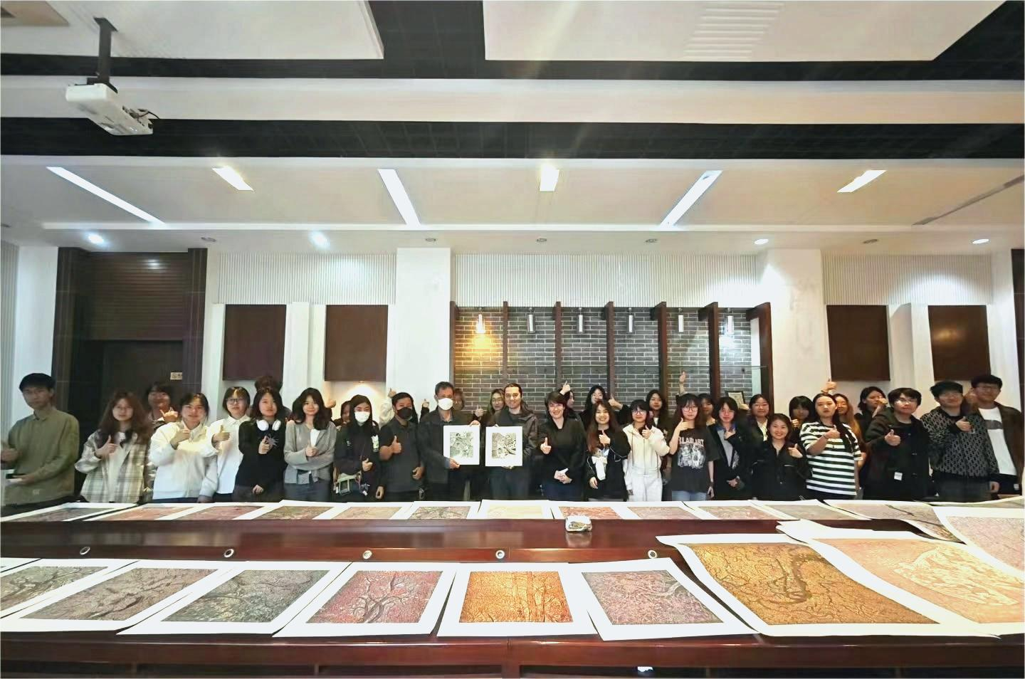 Srijai Kuntawang教授是亚洲著名的套色木板版画和独幅版画大师,作为泰国清迈本土的艺术家,他将家、园、自然、生活四环素融入到每一天的创作情感中。“如果我们不能观察到周围美丽的事物,那就失去了艺术创作最根本的基础。”他告诉同学们生活就是艺术,艺术来源于生活。讲座中,三位教授展示了前期素材积累、创作期间独版凹凸篆刻、15-30种颜色套色版画绘制、水彩独幅版画的肌理创作等,将版画教学、独幅版画教学的过程给同学们做了逐步的演示。讲座后,师生进行面对面的互动交流,并鼓励艺设学子在人工智能对艺术创作影响越来越大的时代,坚定信念,扎根生活,扎根人民,坚持自己的创作理念,用心创作出真善美的艺术作品。