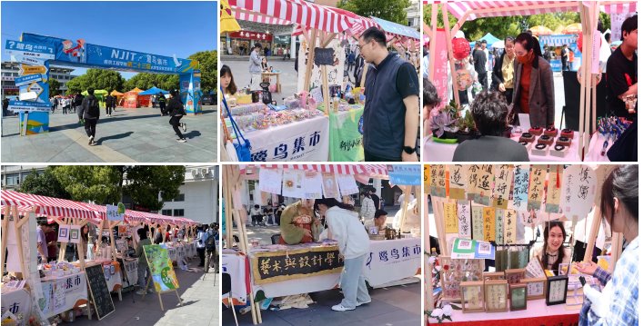 无限创意,流动青春。“NJIT·鹭鸟集市”现场人声鼎沸,集市面向校内外共征集了40个摊位,让同学们沉浸在民族手工艺品、非遗手绘产品、传统文创产品等各具特色的摊位中,从白天逛到夜晚,体验购物、互动乐趣,激发学生创新精神与实践能力。