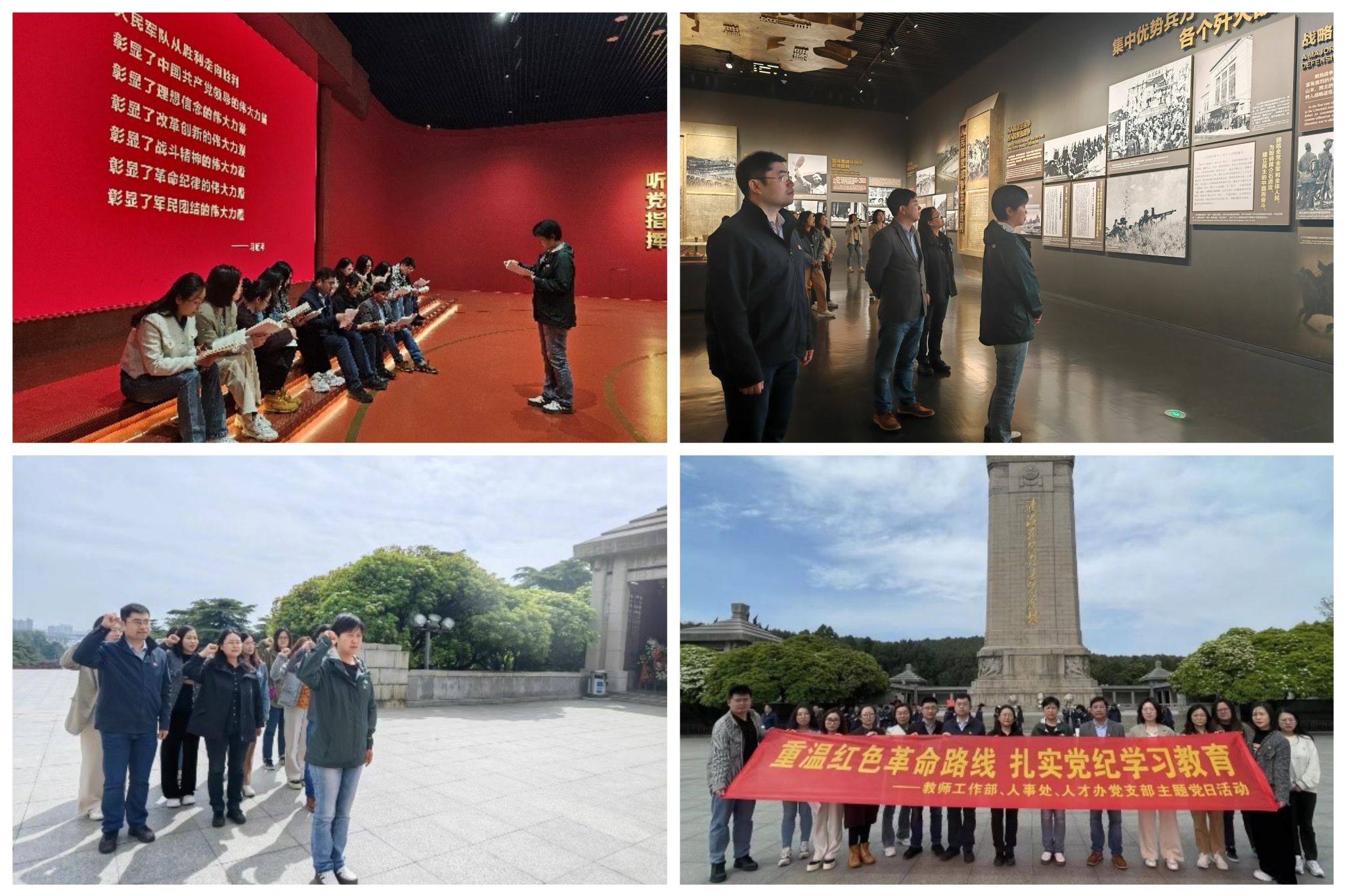 为深入学习贯彻党的二十大精神,落实学校第四次党代会部署要求,扎实推动党纪学习教育走深走实,近日,教师工作部、人事处、人才办党支部以“理论学习+实地调研”的形式开展“重温红色革命路线 党纪教育寓学于行”主题党日活动。