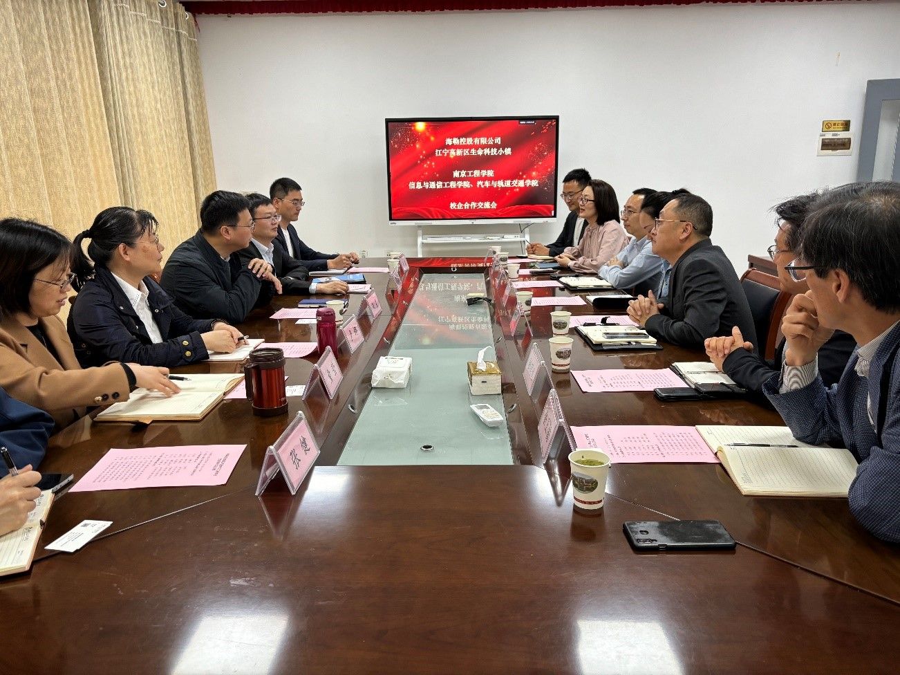 为深入推进“校城融合共创共赢”发展目标,加强企业与学校科研合作,4月19日,江宁高新区生命科技小镇负责人陈昂携手海勒控股有限公司董事长刘庆波、汽车电子技术副总宋志明、人事行政总监吴溪等一行来信息与通信工程学院开展交流调研,汽车与轨道交通学院副院长张袁元受邀参加本次校企合作交流会,会议由信息与通信工程学院院长朱昊主持,学院中层领导参加了会议。
