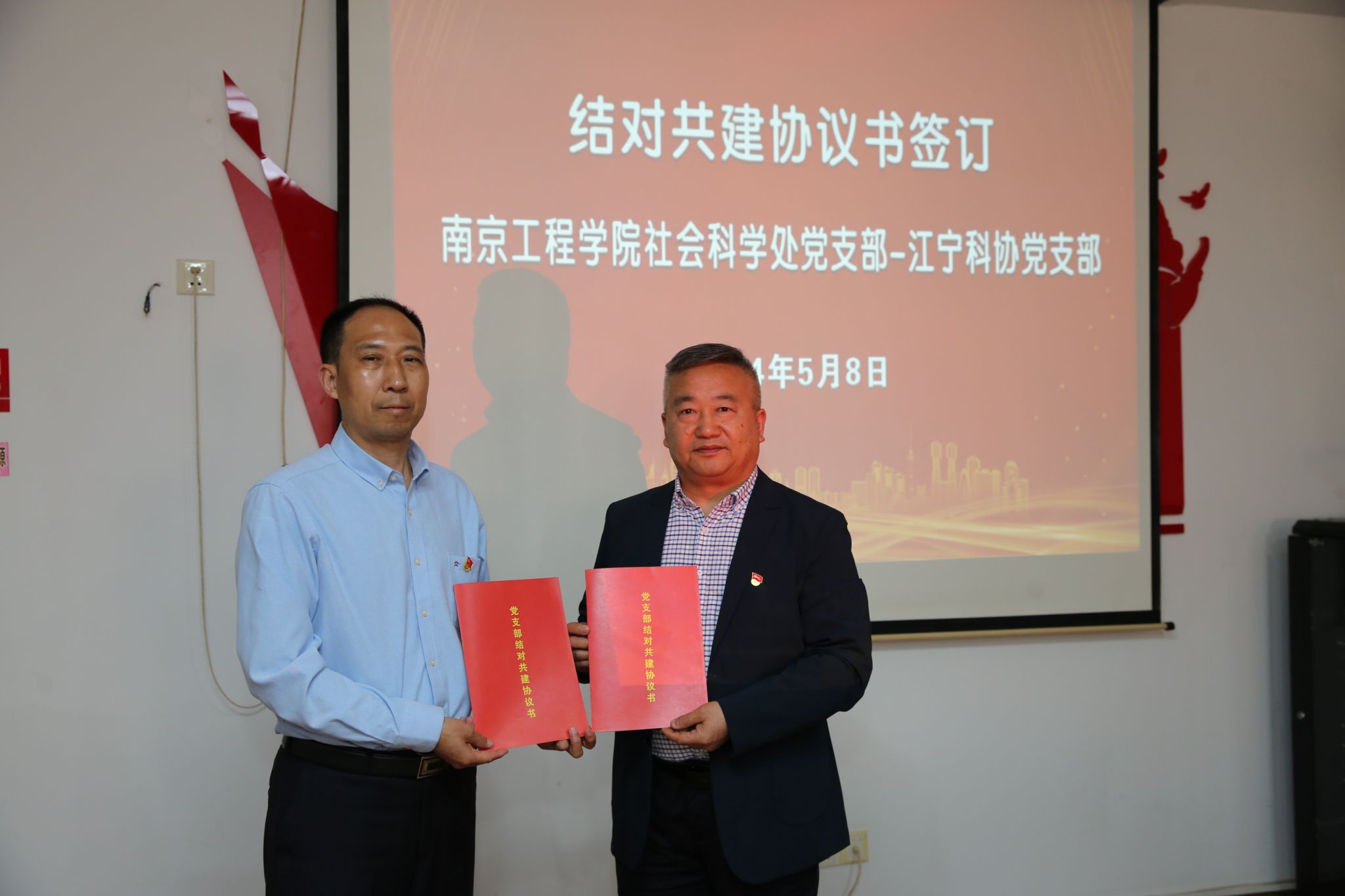 随后,社会科学处党支部书记史修松与江宁区科协四级调研员、支部副书记李德胜现场签订了《结对共建协议书》。