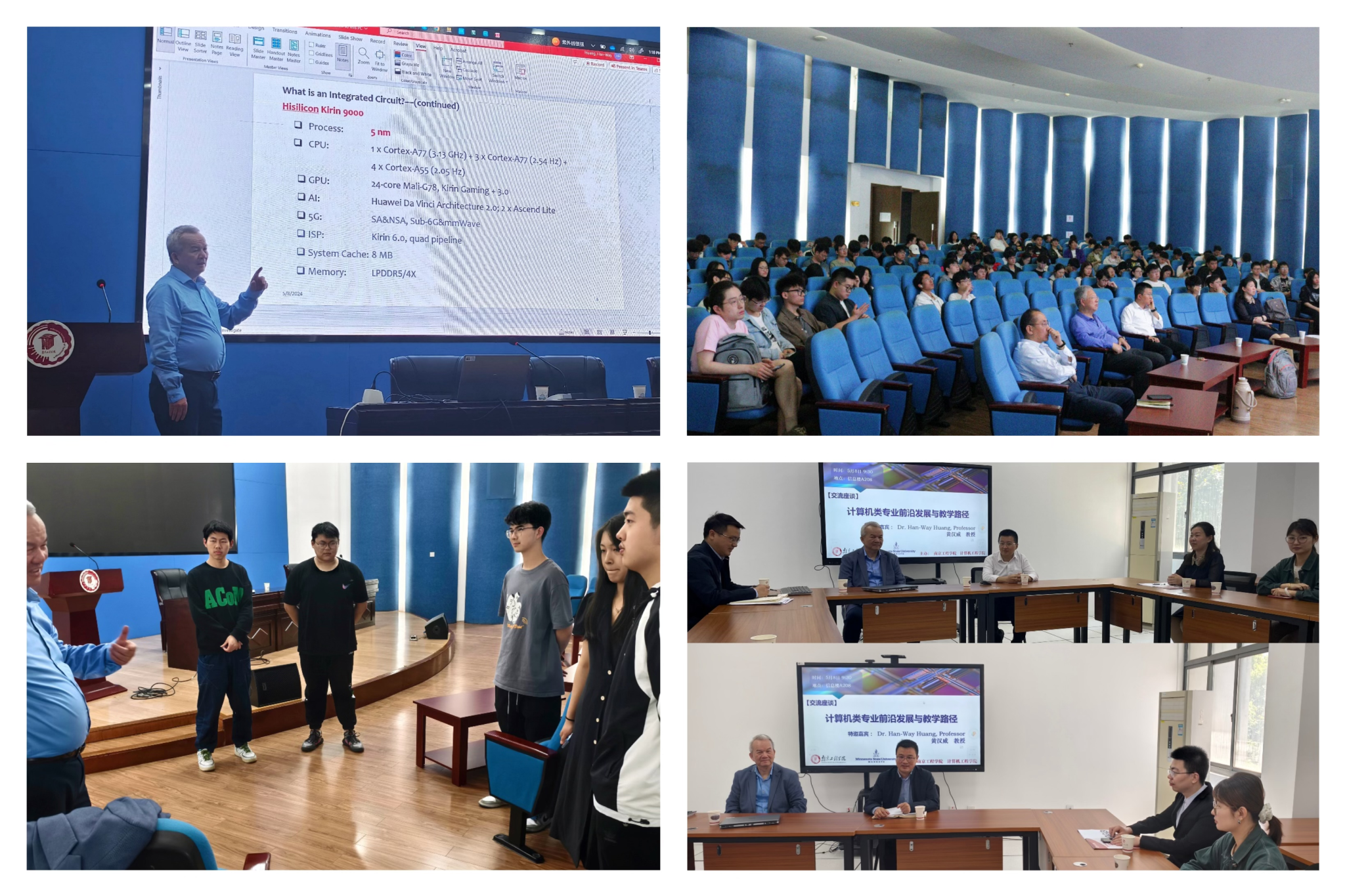 5月8日,美国明尼苏达州立大学黄汉威教授受邀来到计算机工程学院作学术报告,此次报告以“Integrated Circuit Industry”为主题,是黄教授第四次来校与师生分享交流。学院党委书记阚建飞,副院长(主持工作)黄晓华,副院长焦良葆、张建德参与活动。报告由钱瑛老师主持。