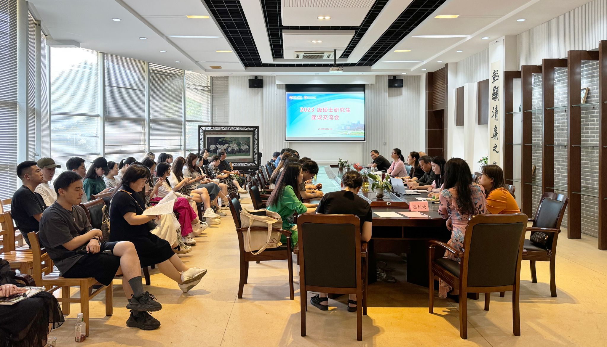 为优化研究生培养,增强研究生教育质量,5月24日,艺术与设计学院在设计楼104会议室举办2023级硕士研究生座谈交流会。学院党委书记王雪飞、院长郑静、分管副院长侯建军、党委副书记胡晓清、研究生导师体及全体2023级研究生参加会议。