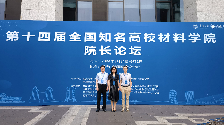 5月31日-6月2日,第十四届全国知名高校材料学院院长论坛在重庆举行,材料科学与工程学院院长巴志新参加论坛,并作交流报告。副院长张保森、王珏随同参会并参与交流讨论。