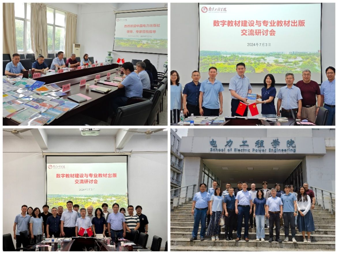 7月3日上午,中国电力出版社营销中心副主任王祎、江苏书源图书有限公司总经理施洪英一行来电力工程学院开展数字教材建设交流研讨,并向学院捐赠一批电力领域精品图书,助力学院图书文献资源的升级。学院党政负责人、系主任和教师代表参会。