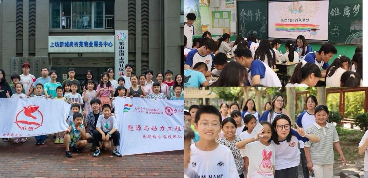 青年大实践,关爱留守儿童。“桑梓情·雏鹰梦”志愿科普团队已经连续11年前往江苏省徐州丰县王沟镇中心小学,针对留守儿童开展暖心支教活动。队员们结合自身专业特长,通过寓教于乐的方式,为孩子们开设了科技启蒙、安全普及、党史教育、艺术鉴赏等丰富多彩的课程,让他们在轻松愉快的氛围中增长知识、开阔眼界。支教团队的接力志愿服务精神受到了当地关工委、团委的表彰鼓励,同时也受到了新华网等主流媒体的宣传报道;在南京市江宁上坊社区,“心愿”支教团队则为二十几名外来务工子女开展“心理健康行”主题系列活动,实践队创新“五育并举”活动形式,以德育心、以智慧心、以体强心、以美润心、以劳健心,于润物无声中培养孩子们坚毅品格,厚植远大理想。