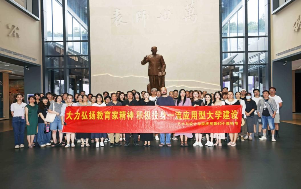 为进一步大力弘扬教育家精神,建设高素质教师队伍,9月4日,在第40个教师节来临之际,艺术与设计学院赴南京晓庄行知园开展庆祝教师节专题学习活动,学院党政领导、全体教职工参加了本次活动。