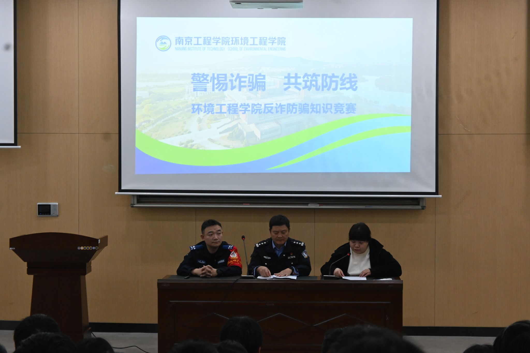 为深化校园反诈防骗教育,切实提升学生的自我保护能力,营造更加安全、和谐的校园环境,环境工程学院于10月30日在信息楼B103举办“警惕诈骗,共筑防线”反诈防骗知识竞赛,通过竞赛形式促进学生对反诈知识的学习与掌握,共同构建校园反诈防线。校保卫处副处长朱吉林,高校反诈宣讲团的核心成员、校警卫室民警许大应,该院党总支副书记侯昀,学工办老师及2024级全体新生参加了活动。