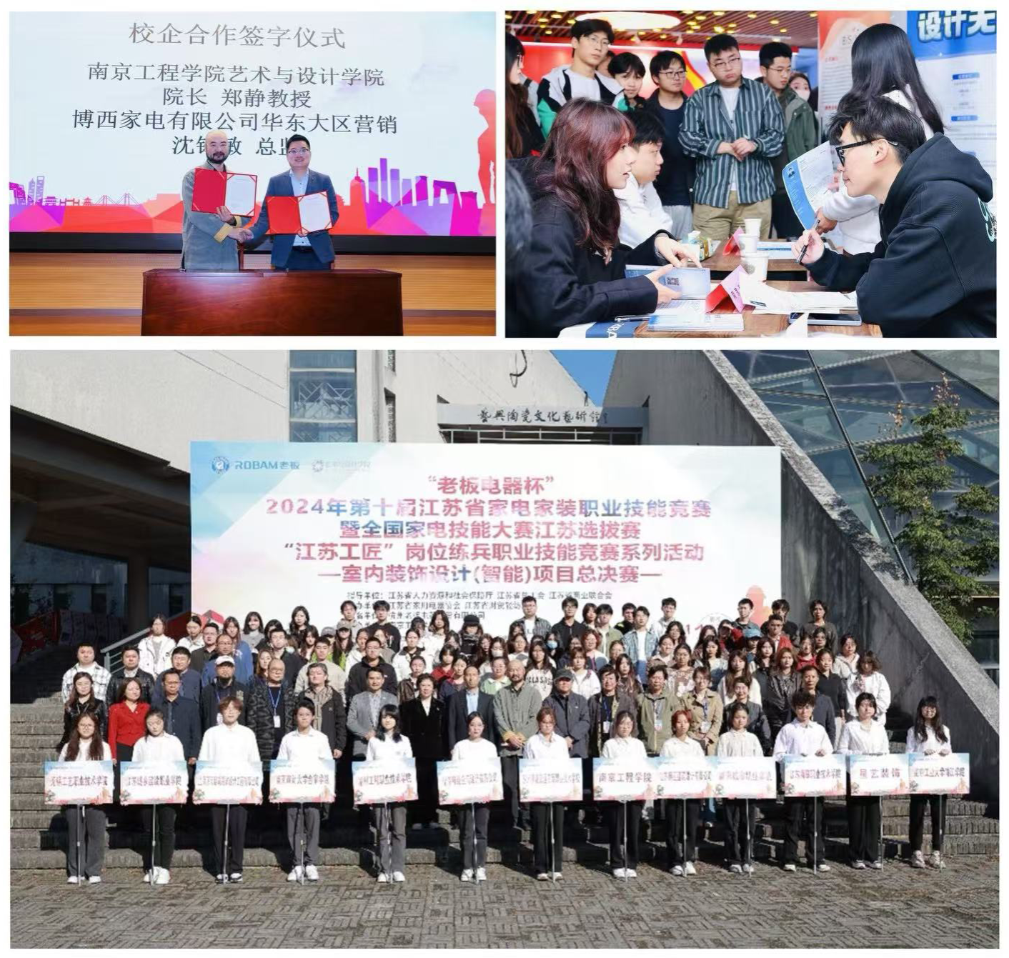 开幕式期间,江苏省家用电器协会和艺术与设计学院还邀请多家企业开展了专场招聘会,并和南京老板电器、博世家电等签署了共建合作协议,进一步深化了校企合作。