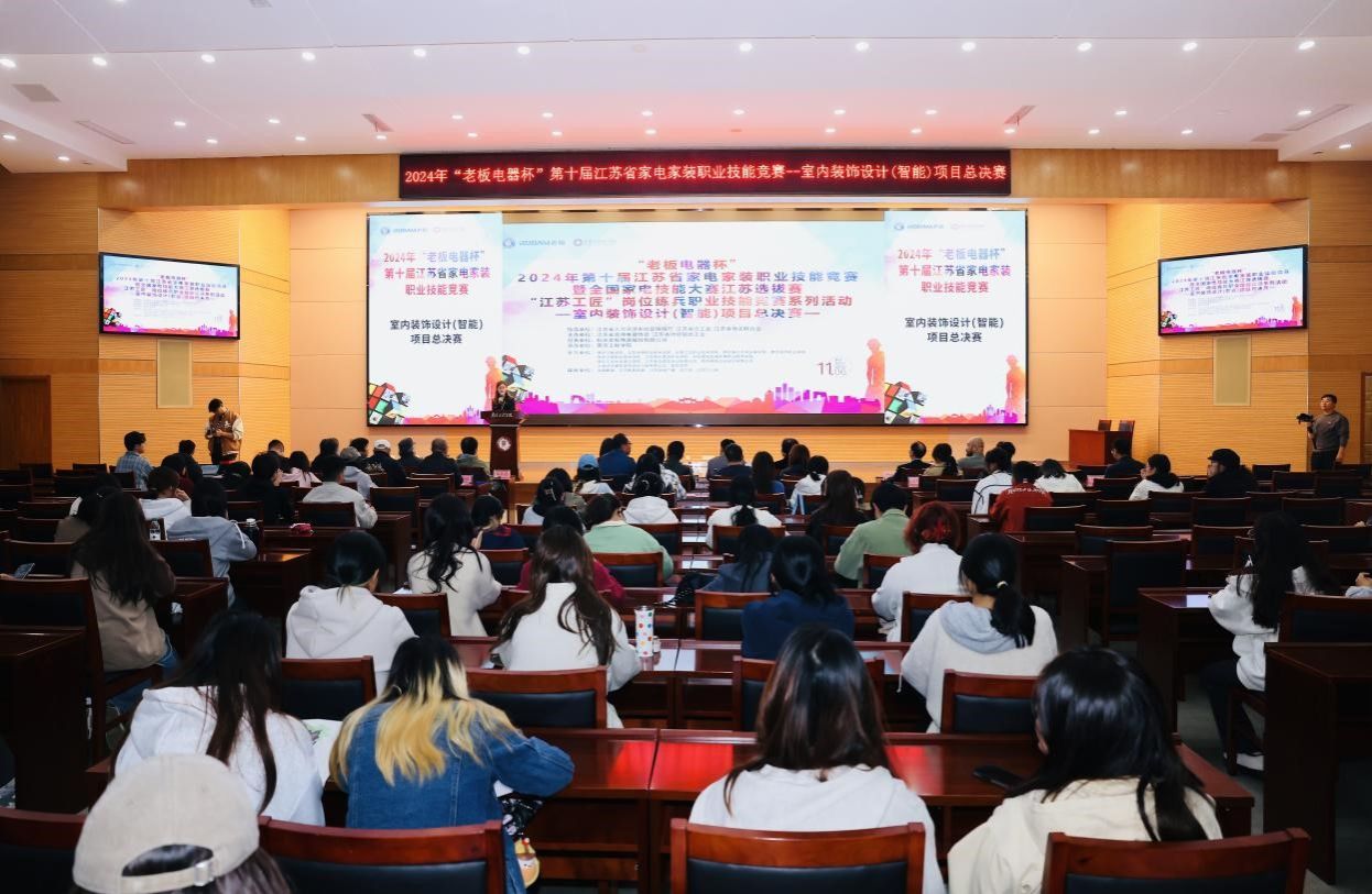 11月6日,由艺术与设计学院承办的2024年“老板电器杯”第十届江苏省家电家装职业技能竞赛暨全国家电技能大赛江苏选拔赛——智能室内装饰设计项目决赛在该院影视动漫厅开幕。学校社科处处长史修松、江苏省家用电器协会书记钱争鸣、江苏省总工会财贸轻纺工会主任苗剑东、艺术设计学院院长郑静、江苏省家用电器协会副会长王伟、老板电器南京销售公司副总经理邓良勇和选手们共同参加了开幕式。