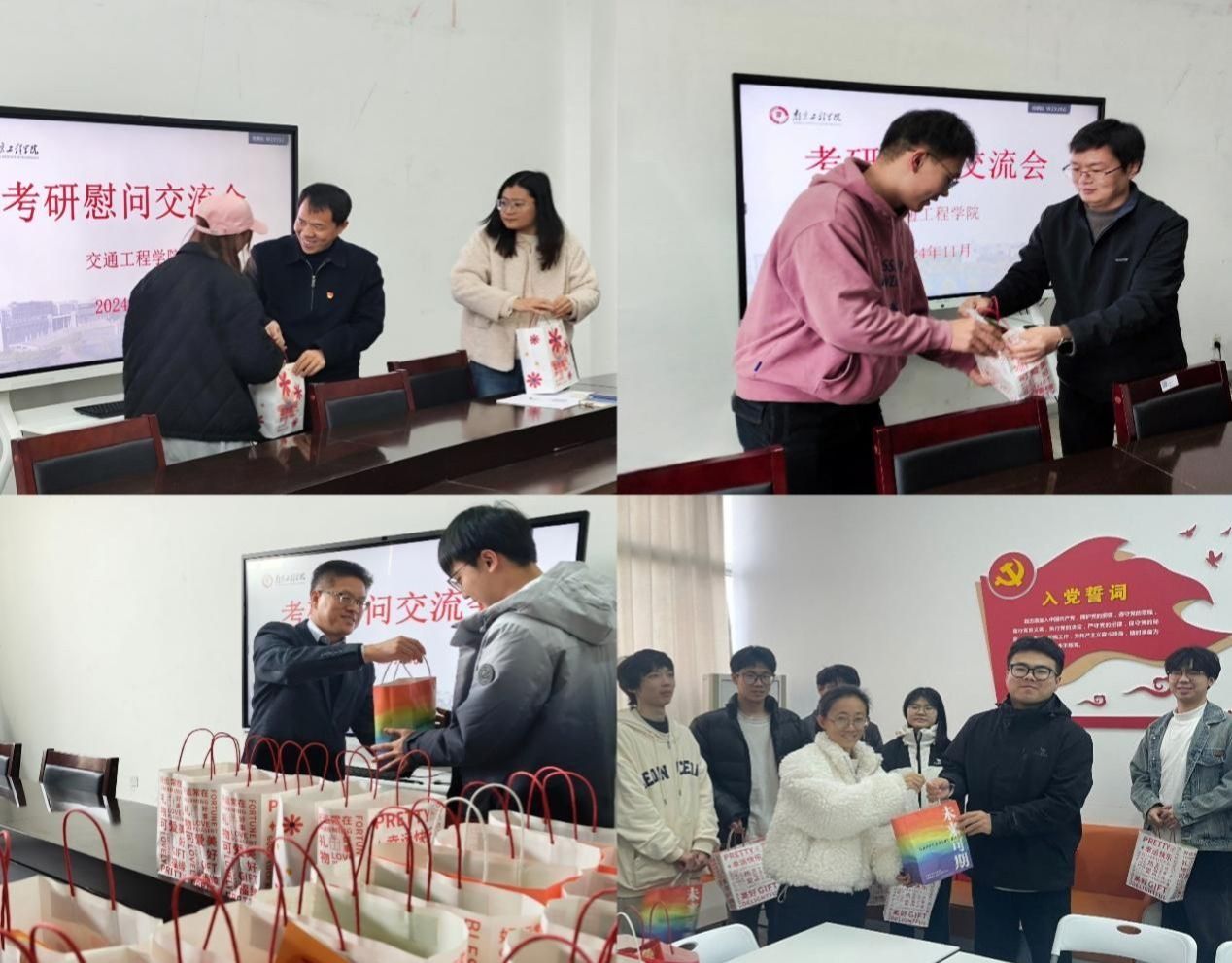 又是一年考研季,为鼓励考研学生坚定备考信心,缓解学业压力,充分展现学院对考研学子的深切关怀,11月21日,交通工程学院组织开展考研学子慰问活动,学院党政负责人、关工委老教师、毕业班班主任、第二班主任、2025届考研学生共同参加考研慰问交流。