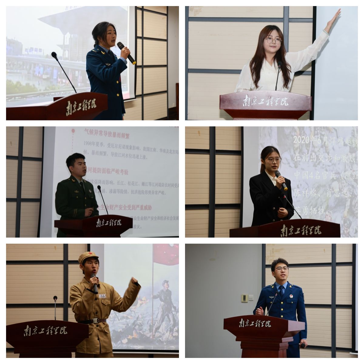 经过各学院初赛、复赛的层层筛选,共遴选出12组选手参加决赛。选手们结合自身学习和生活经历,讲述对国防的理解和认识,表达对祖国的热爱和对国防事业的坚定支持,感情真挚,事例鲜明。退役复学大学生选手代表从自身军旅经历出发,激励广大学生珍惜和平环境,努力学习,为国防事业贡献力量,建筑工程学院曹欣怡立足自身专业,从反省自己“作为建筑学专业的学生,我的设计未来能否在战时为人民筑起一道屏障”出发,深刻阐述“国防不只是军人的职责,更是我们每个人的使命”,号召广大青年学生扎根自身专业,为中华民族的伟大复兴筑起坚固长城。