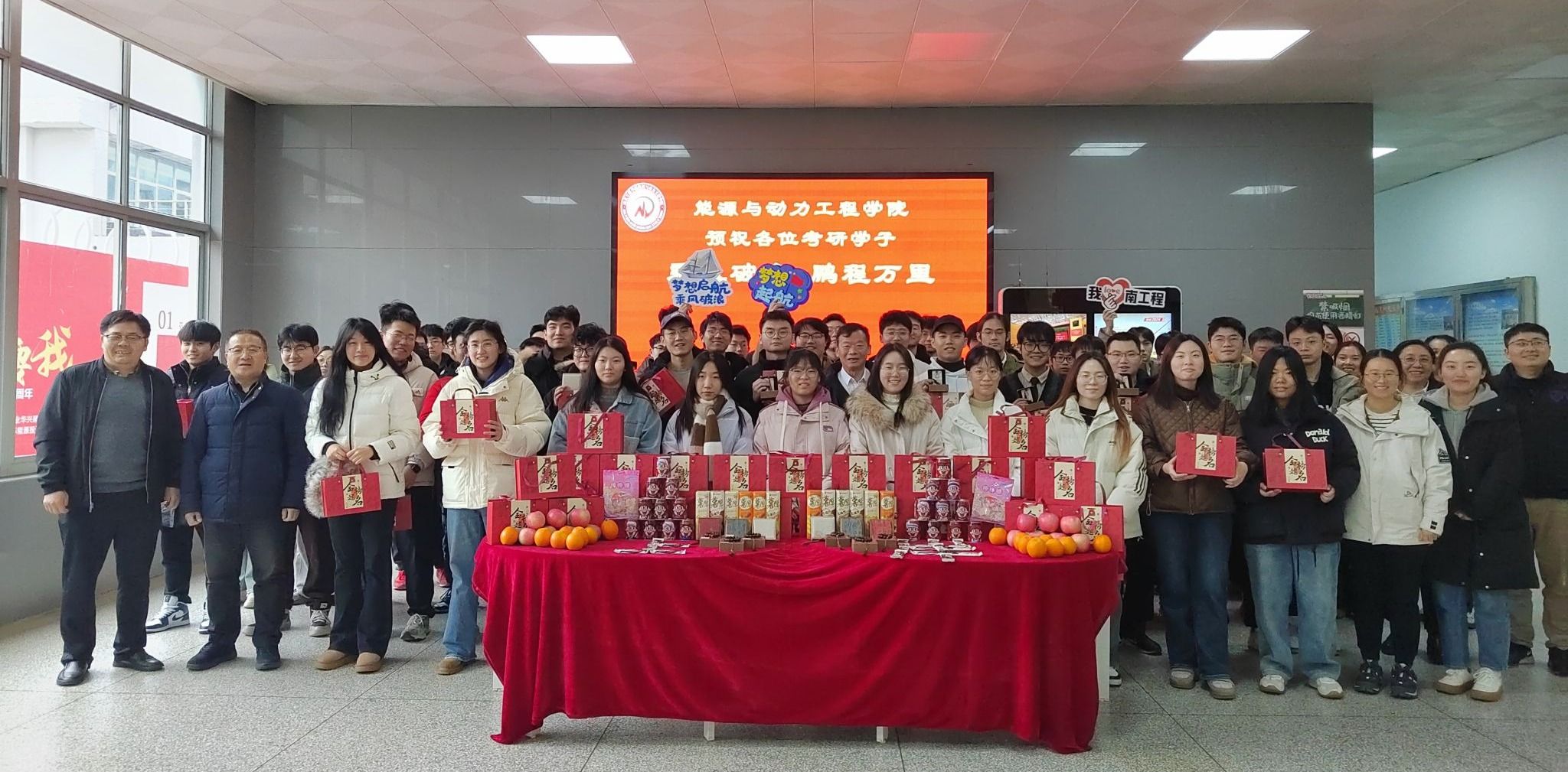 “戴上学弟学妹们做的‘好运’手串,感觉我离‘上岸’又近了一步,我们有信心金榜题名!”12月12日,能源与动力工程学院党政领导班子、关工委辛洪祥老师以及学工办全体辅导员在学院一楼大厅为2025届考研学生送上深深祝福与美好期许,鼓励他们乘风破浪,勇攀高峰。