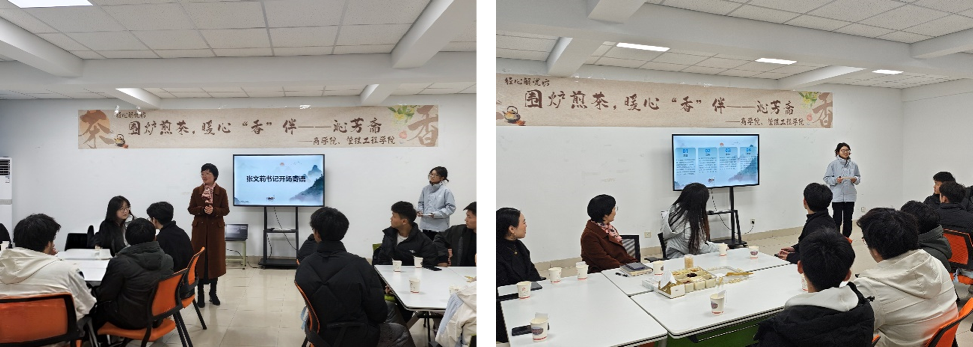 为帮助学生缓解焦虑、暖身润心,12月12日,商学院、管理工程学院在“一站式”学生社区活动室举行“围炉煎茶 暖心‘香’伴”舒压畅聊沙龙,商学院党委书记张文莉、管理工程学院党委书记徐娟、学工办教师及各年级学生参加本次活动。